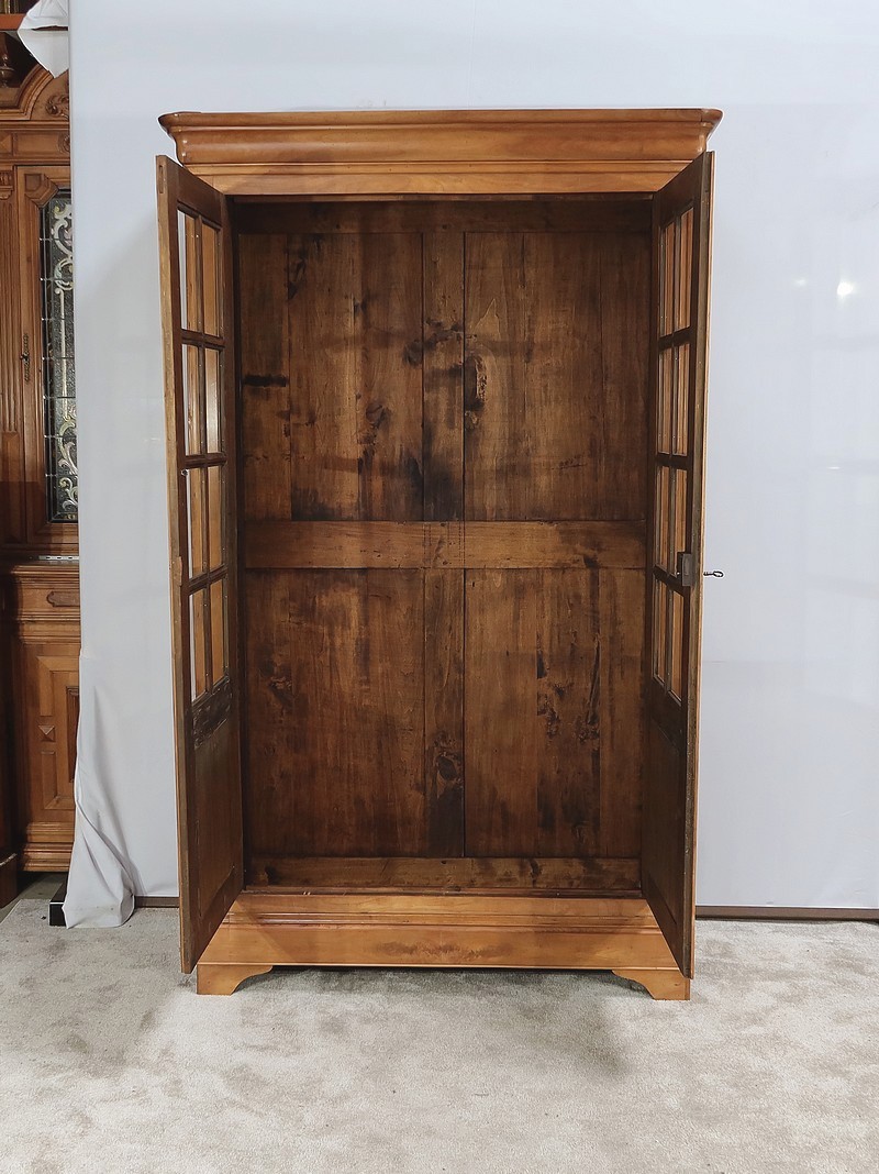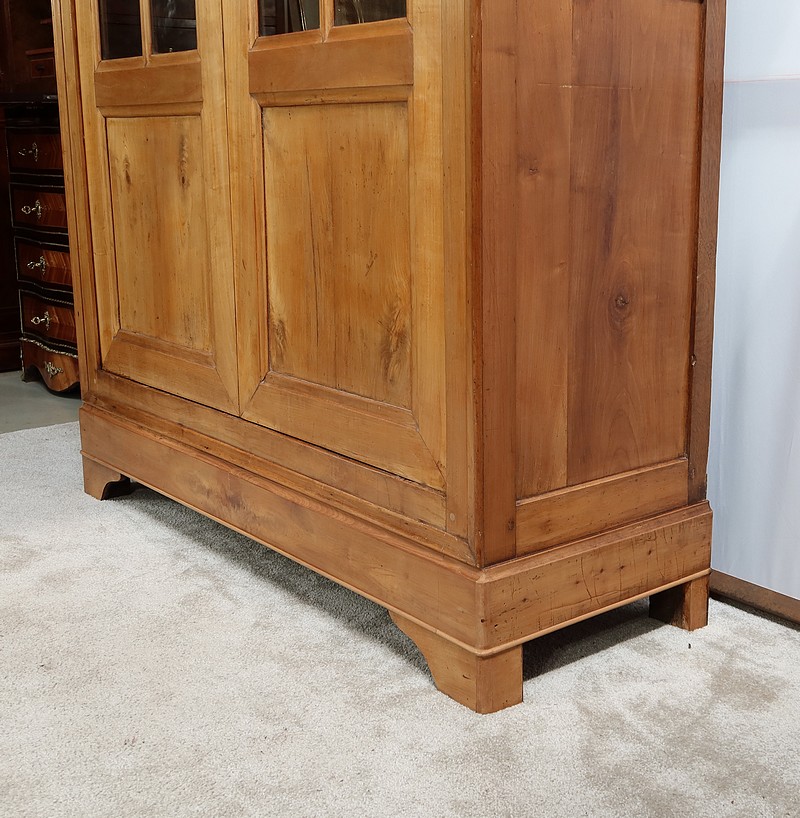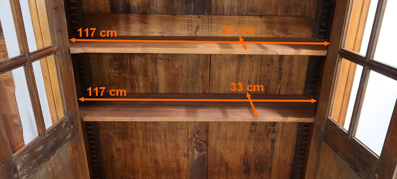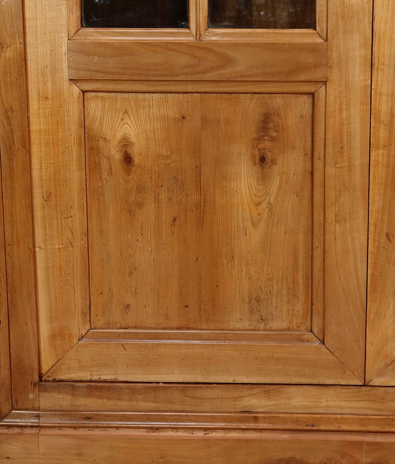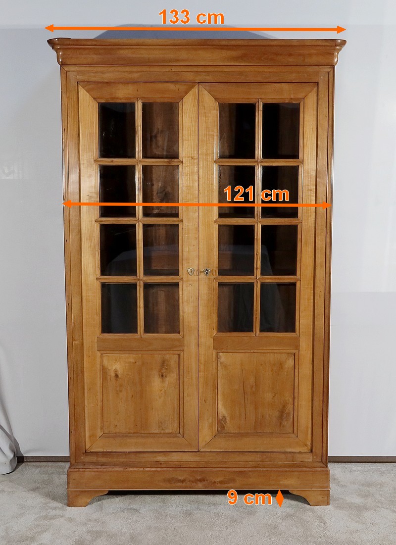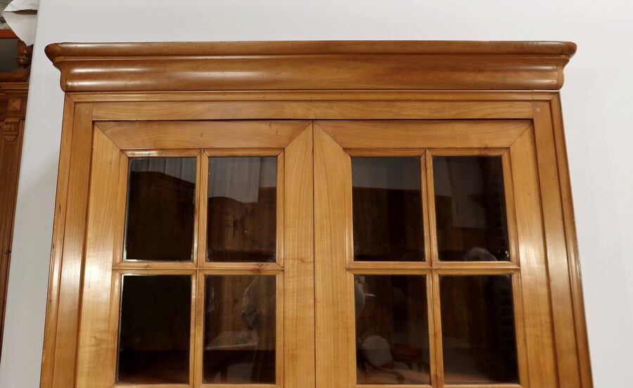Belle bibliothèque en merisier massif, ouvrant par deux portes vitrées au 2 tiers. La partie basse est pleine et panneautée.
