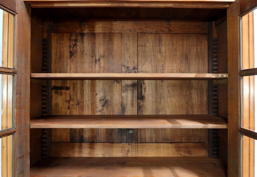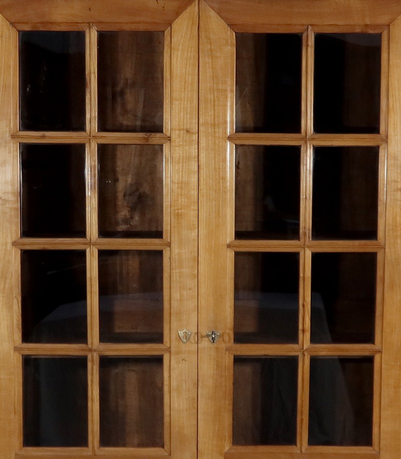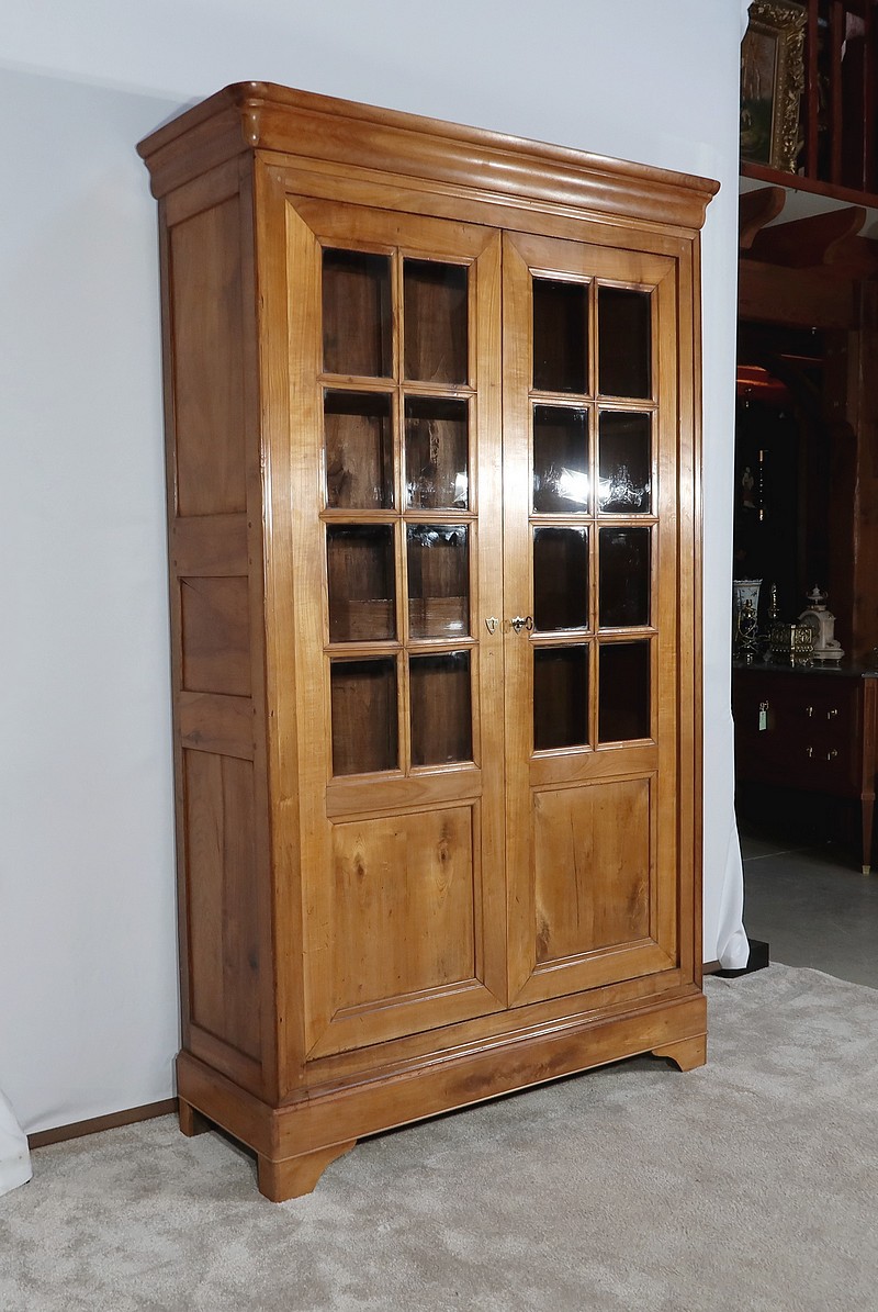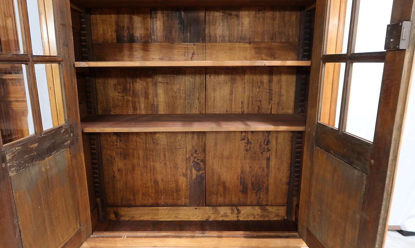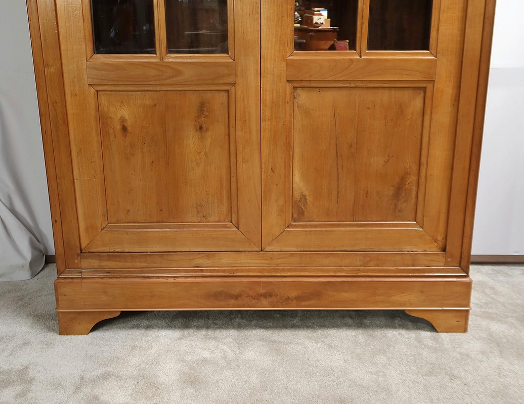 Belle bibliothèque en merisier massif, ouvrant par deux portes vitrées au 2 tiers. La partie basse est pleine et panneautée.