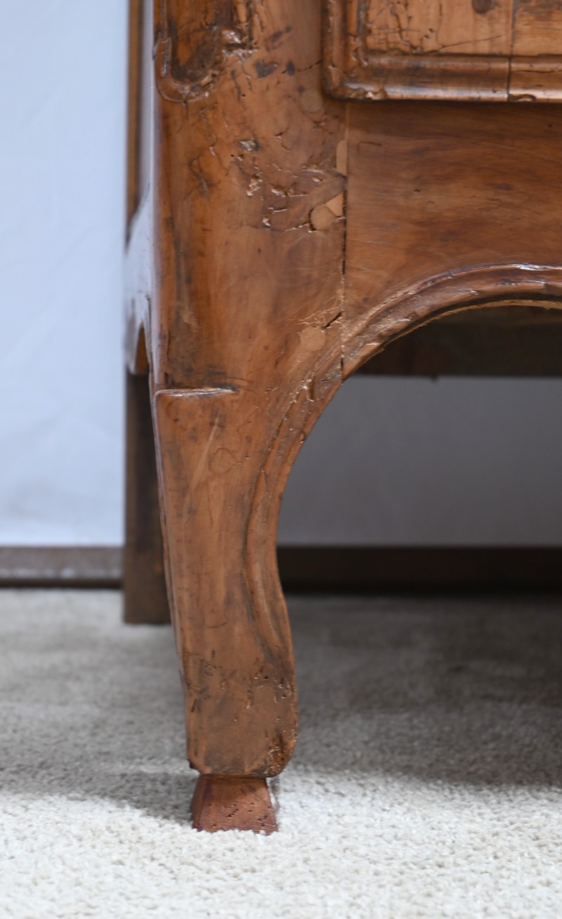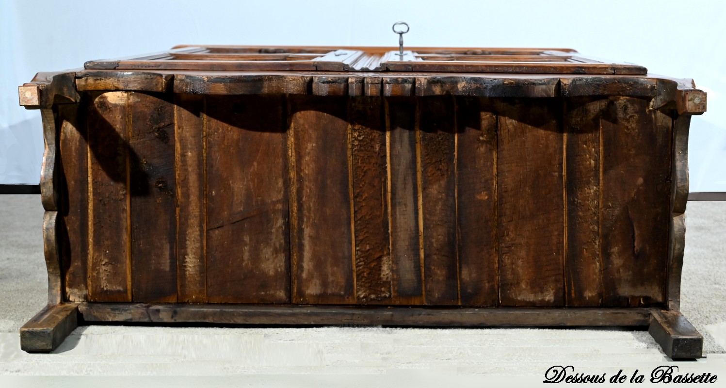 Les montants arrondis et à défoncement se terminent par de petits pieds à bosse Louis XV.