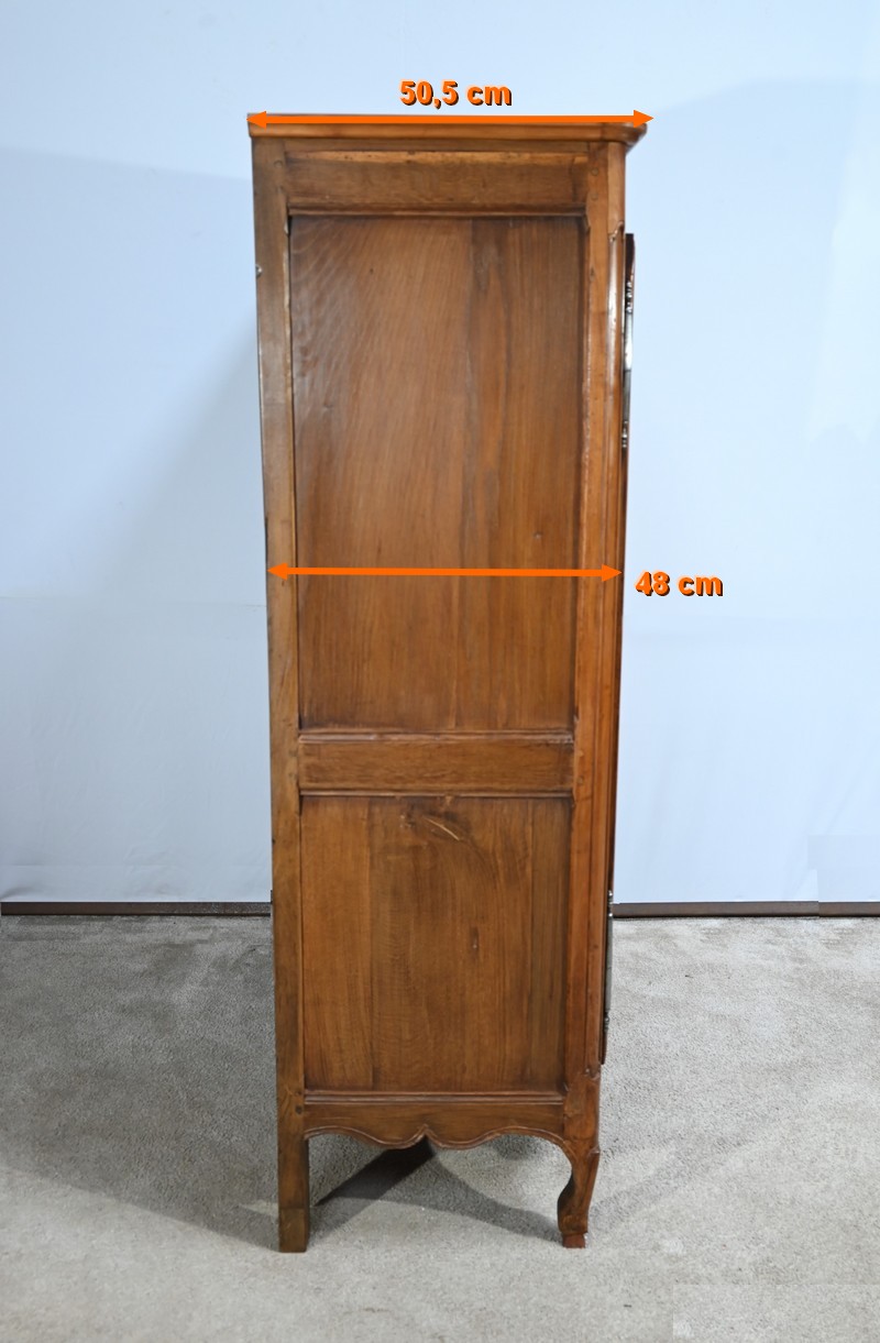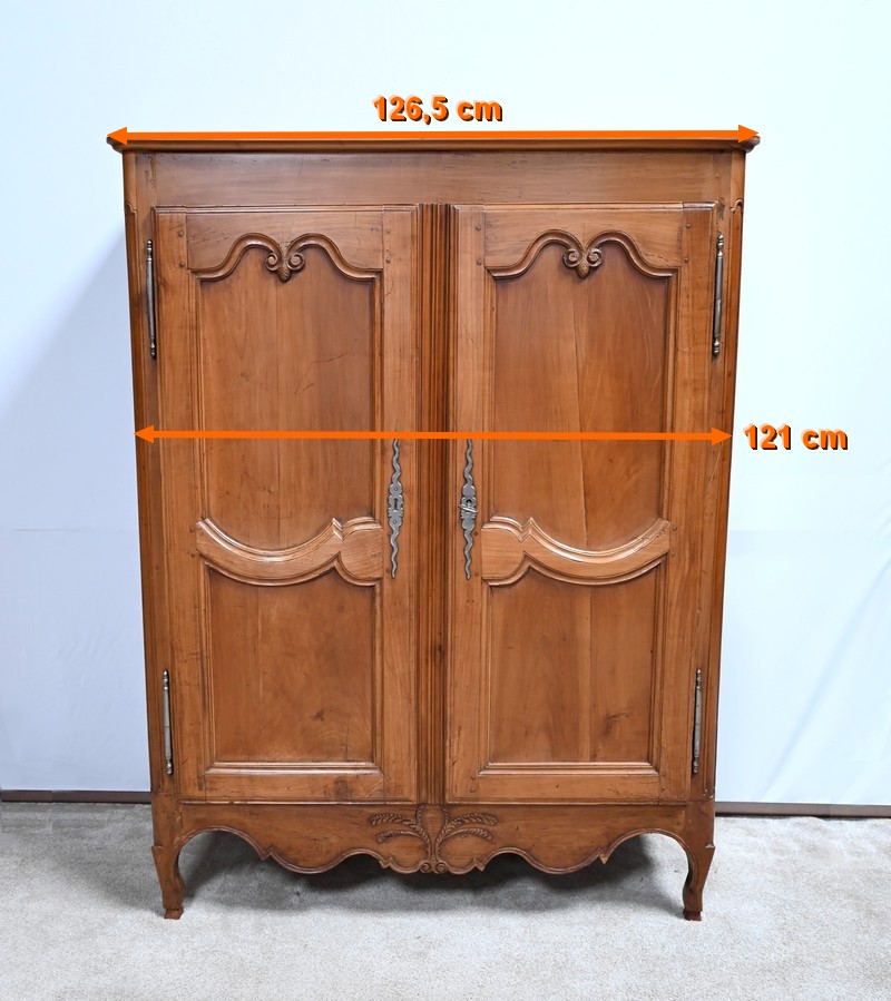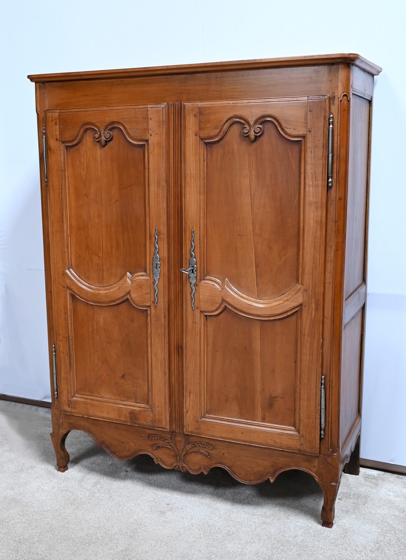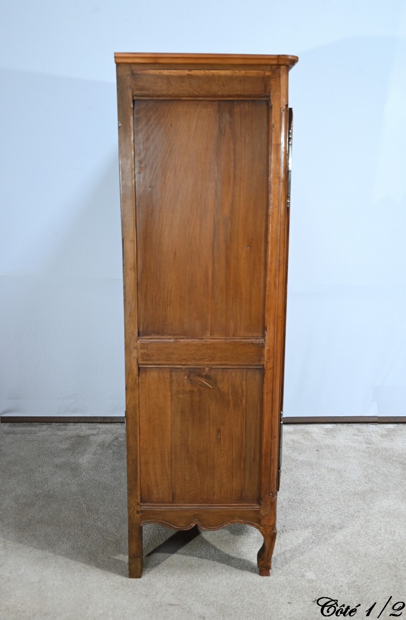 Cette petite armoire, communément appelée « Bassette », présente un corps en merisier massif et des côtés en chêne.