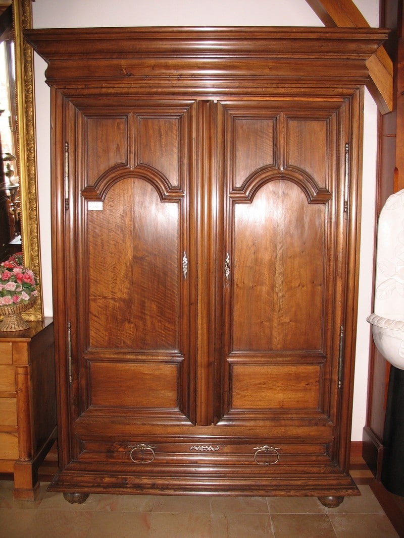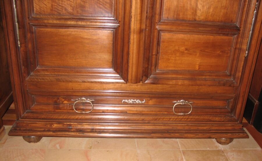 Majestueuse Armoire Louis XIV en noyer avec ses côtés en merisier du milieu du XVIIIème.
