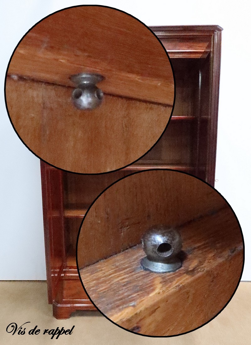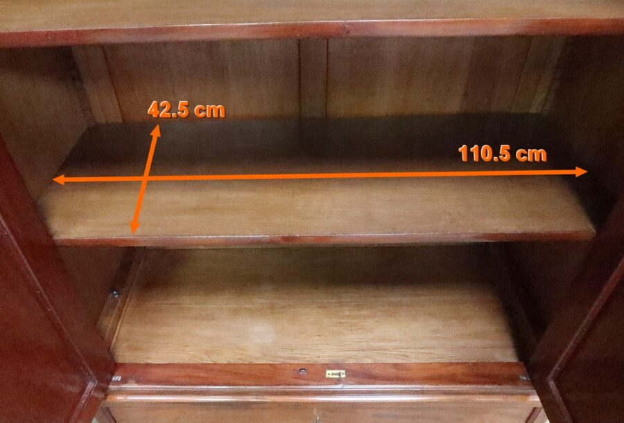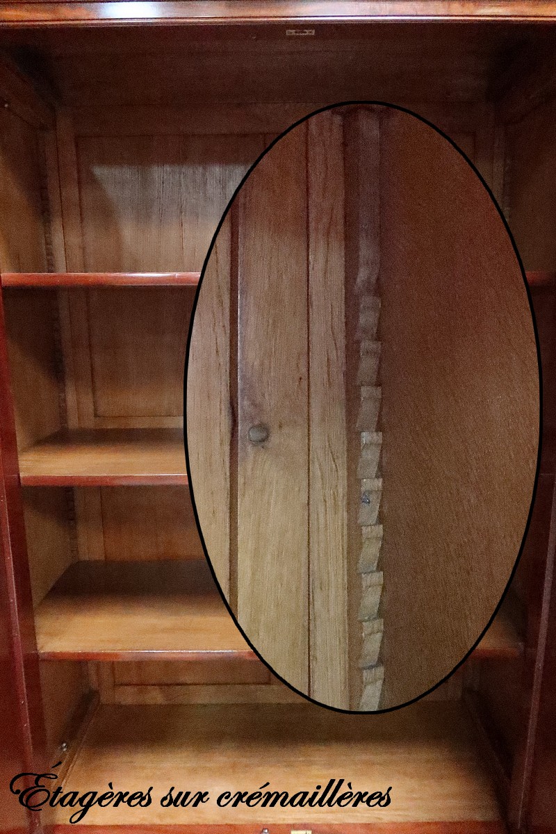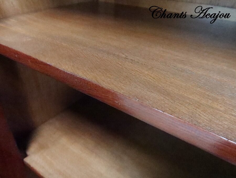 L’intérieur est garni de 3 étagères à chants Acajou, réglables puisque posées sur crémaillères.