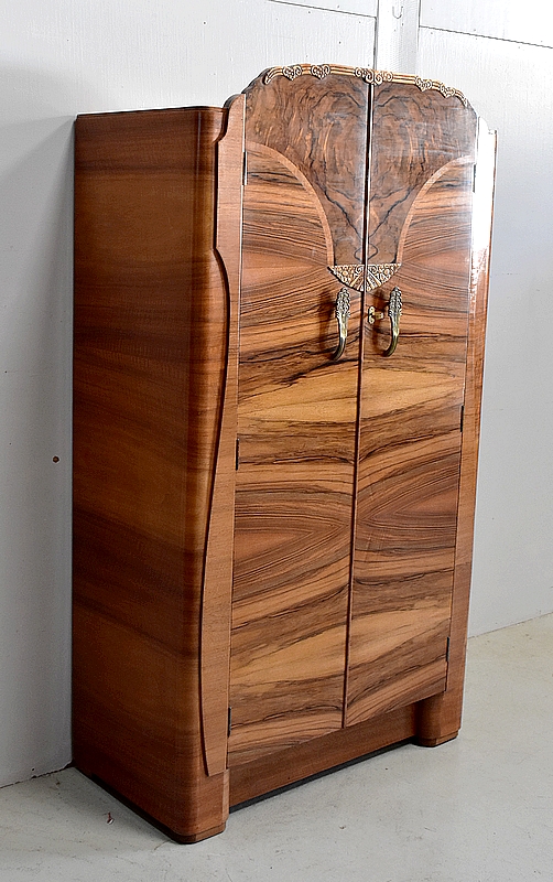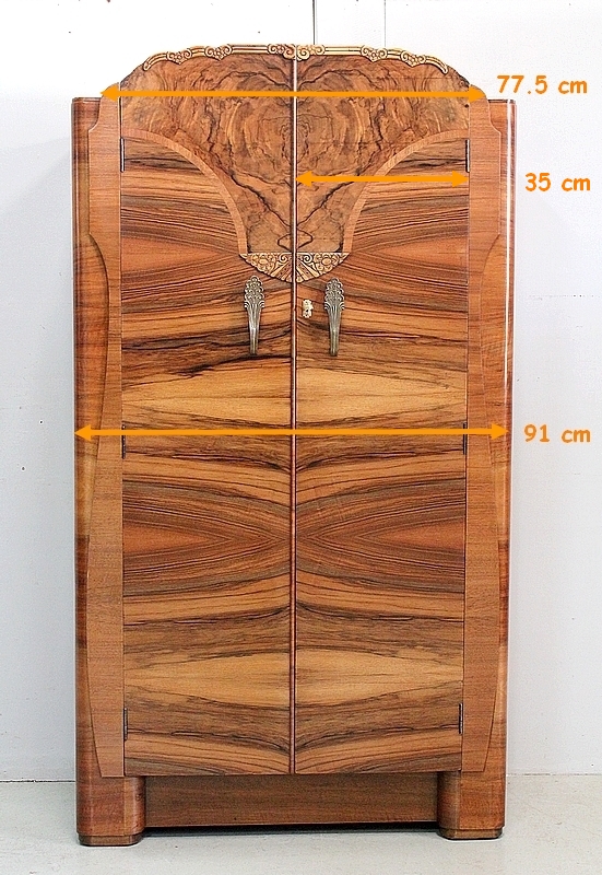 Rare Petite Armoire en Placage de Noyer et Ronce de Noyer, conçue en 1920 / 1930.