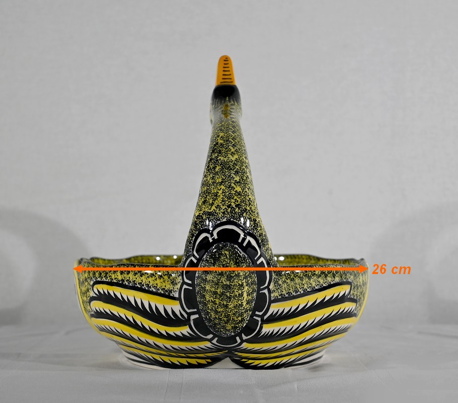 Ce panier en faïence, atypique par son style, saura se faire remarquer sur une table ou votre meuble favori.
