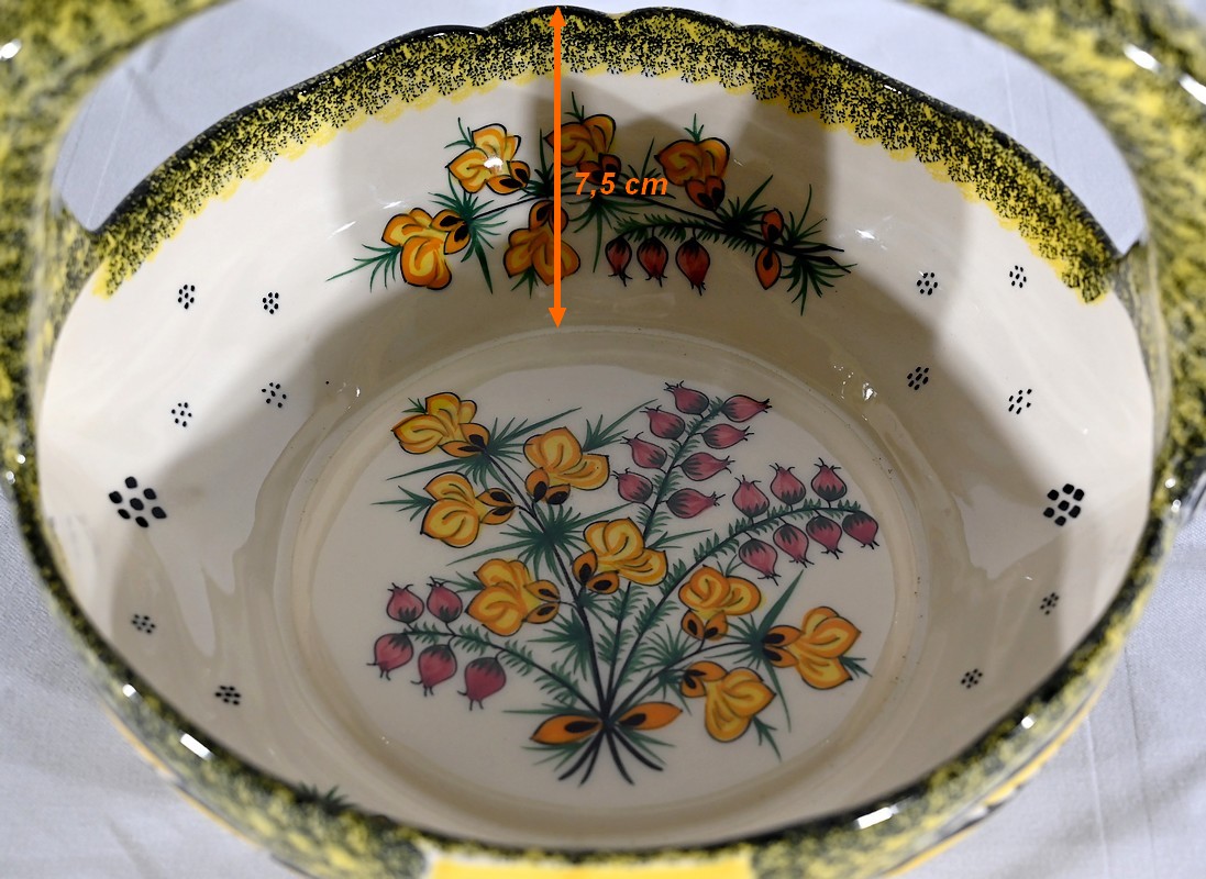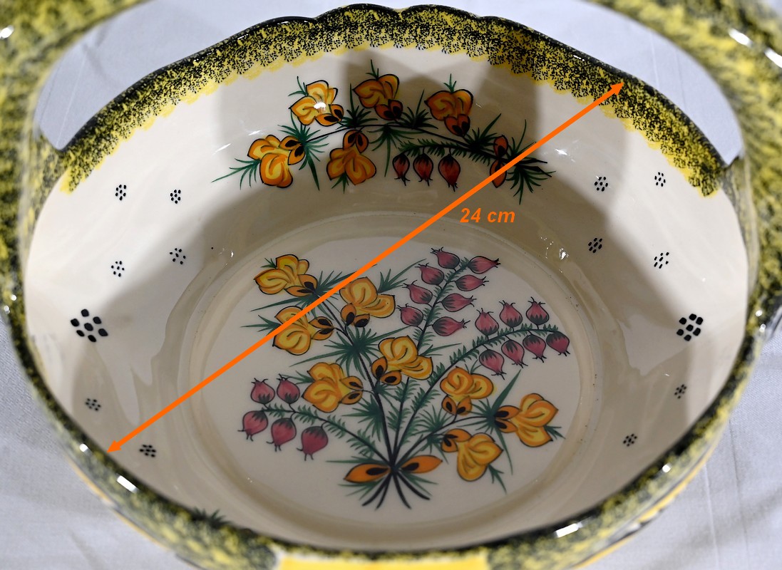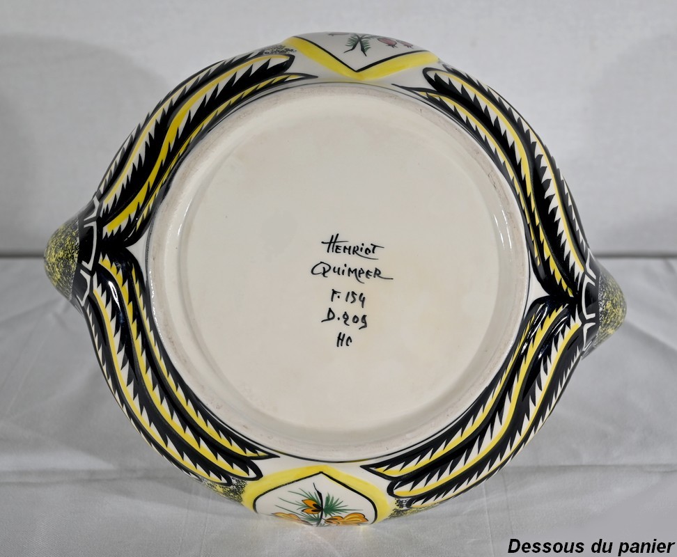 Panier ou corbeille à fruits circulaire, en faïence polychrome, de la manufacture Quimpéroise Henriot.