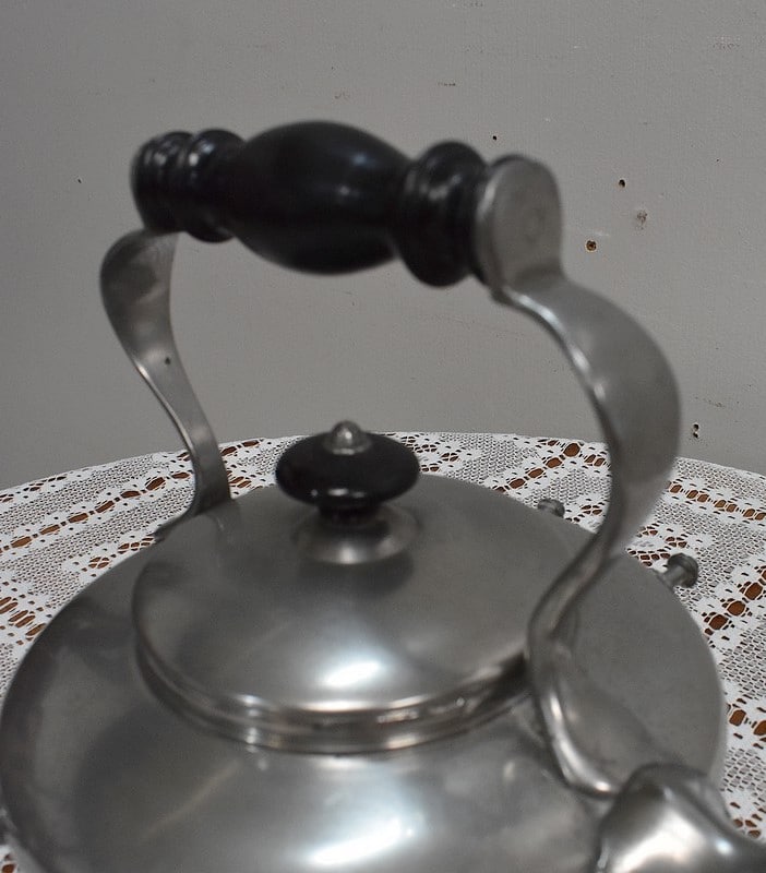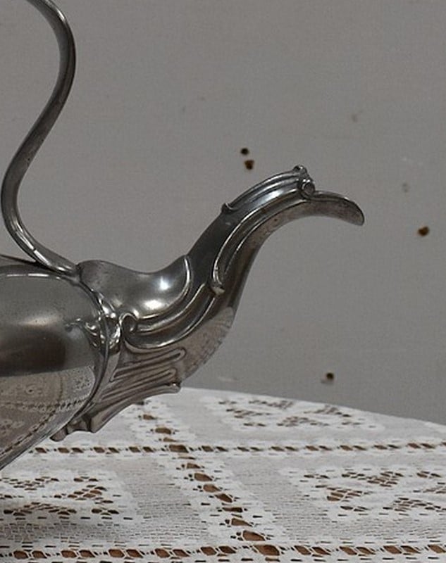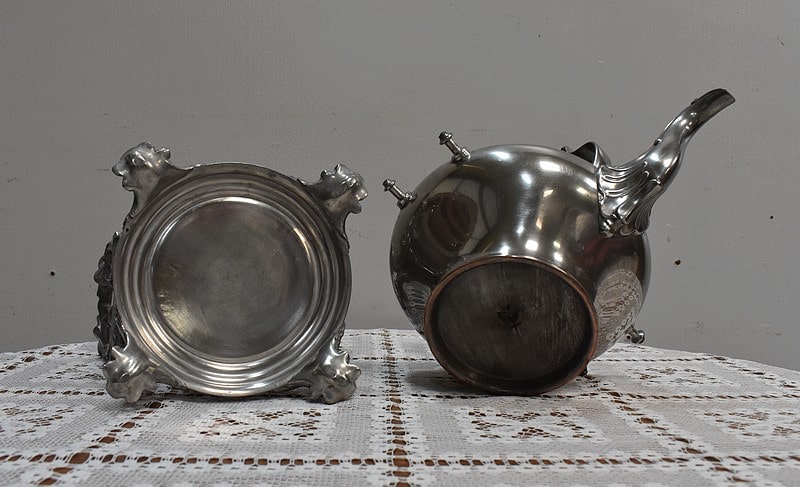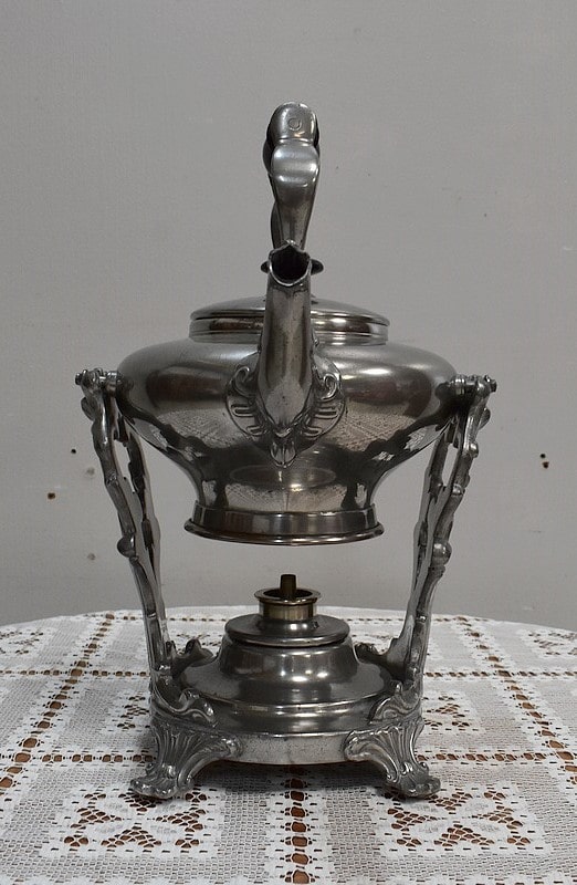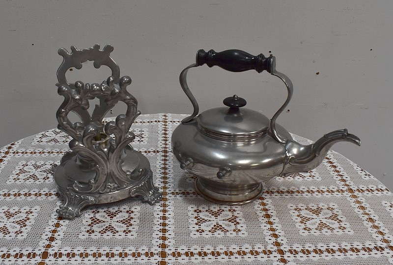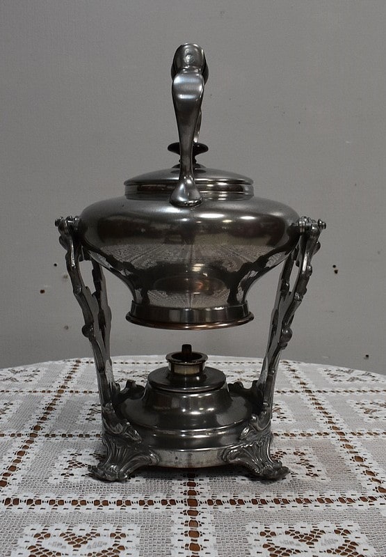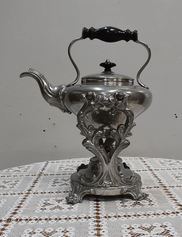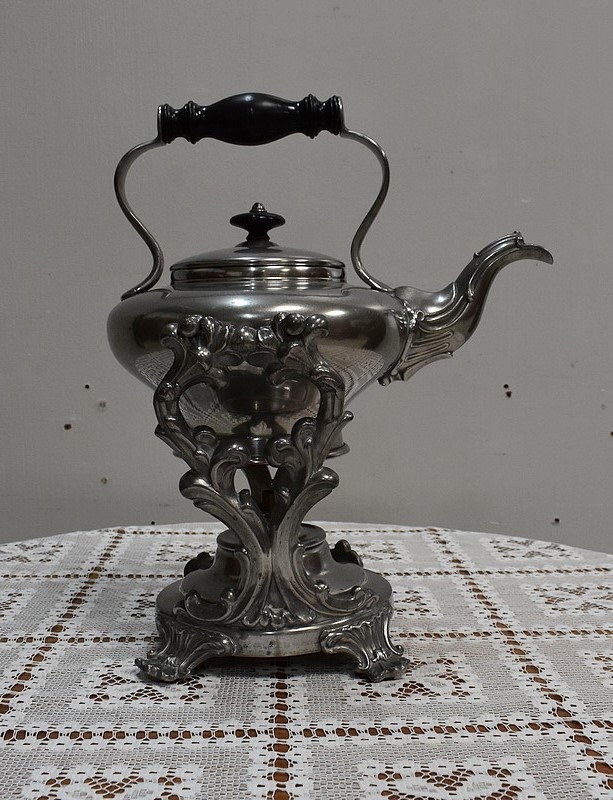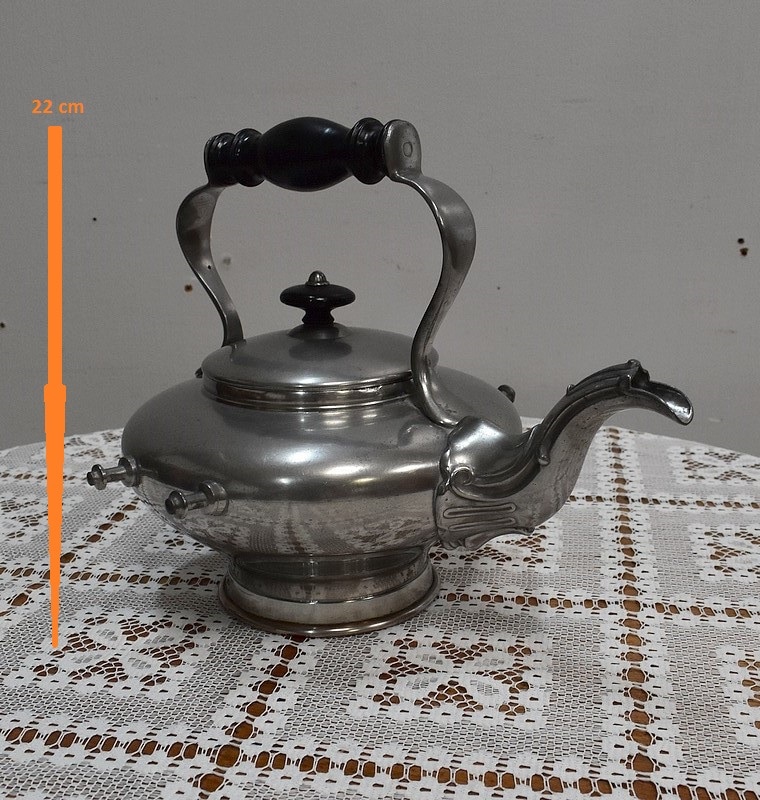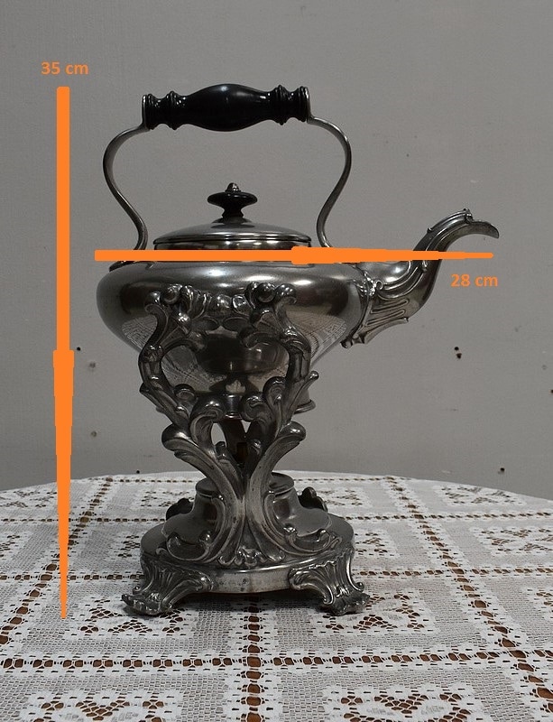Bouilloire de Voyage en Cuivre Argenté, de style Louis XV, traditionnellement utilisée pour faire bouillir l’eau du thé, et la maintenir chaude, spécialement dans les pays Asiatiques.