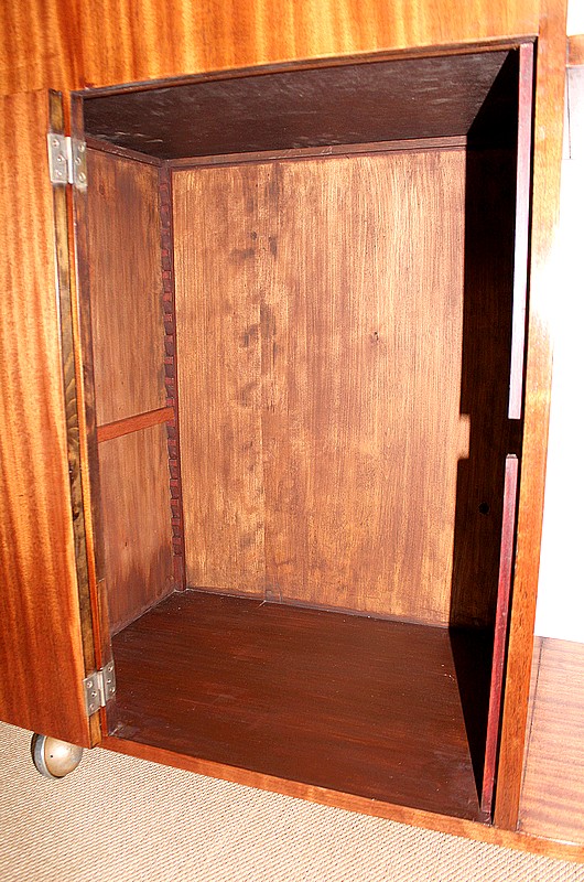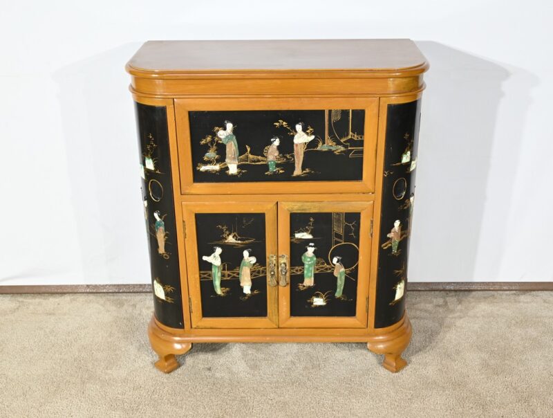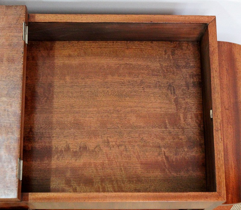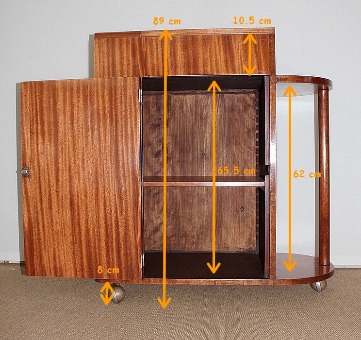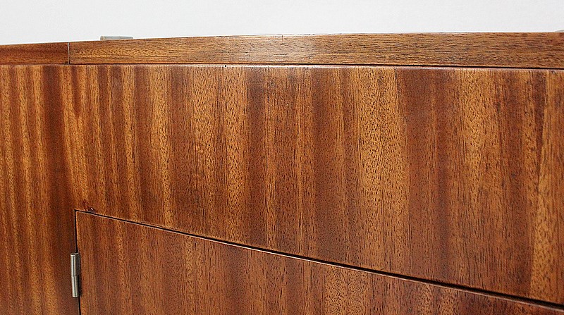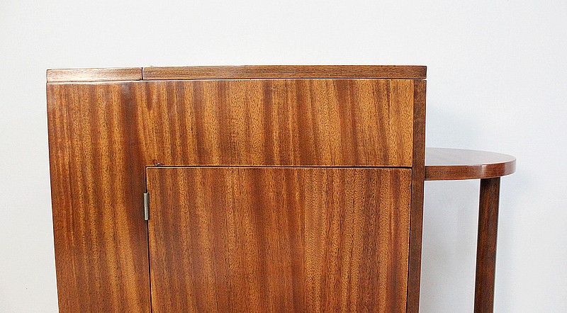 Meuble Bar au Design Rétro des années 1950, composé de Placages d’Acajou sur l’ensemble de ses Faces.
