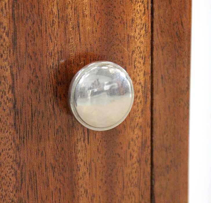 Le dessus de ce Mobilier consiste en un Abattant, qui une fois ouvert, donne accès à un Compartiment Réserve profond de 10.5 cm. Celui-ci vous permet d’y placer des petits Verres par exemple. Ces deux compartiments sont chacun muni d’un Bouton Nickelé.