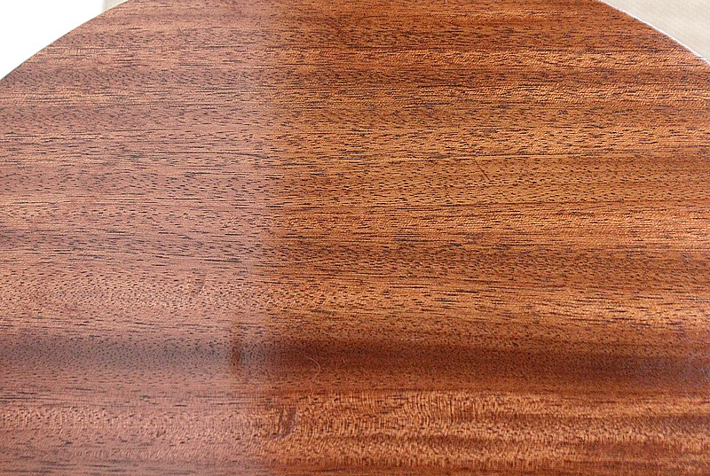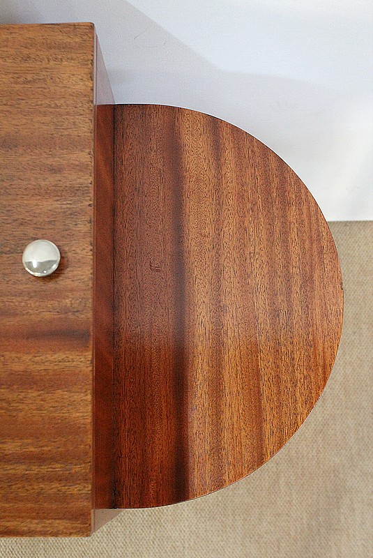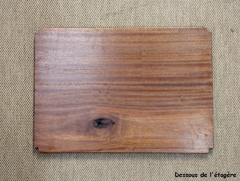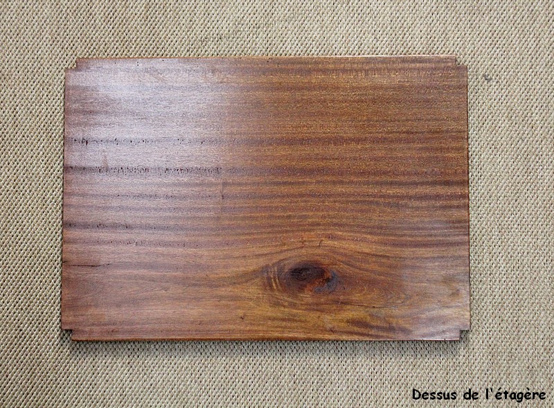 La partie Gauche de ce Bien propose deux Tablettes en Demi-Cercle, reliées entre-elles grâce à une Colonne Cylindrique d’un Bois plus Foncé.