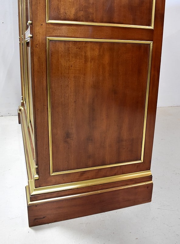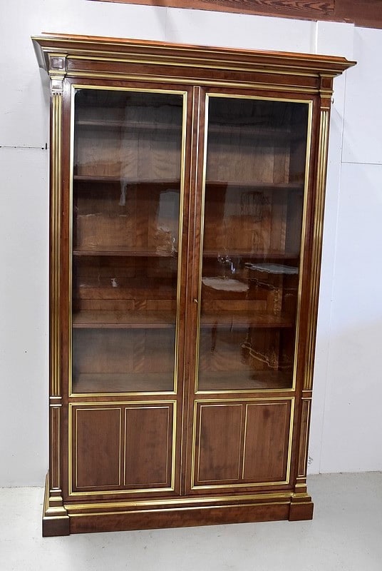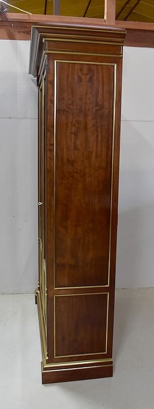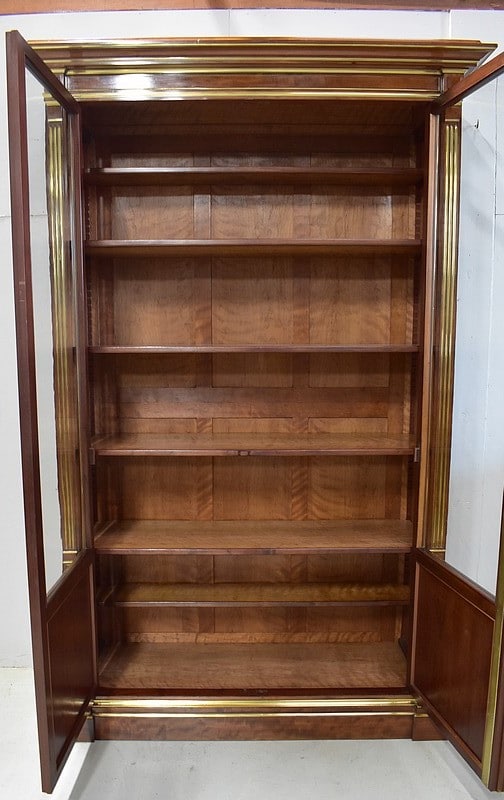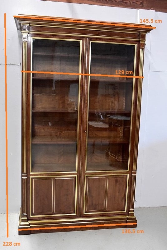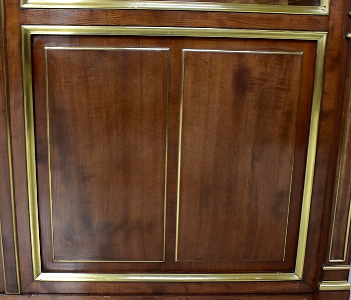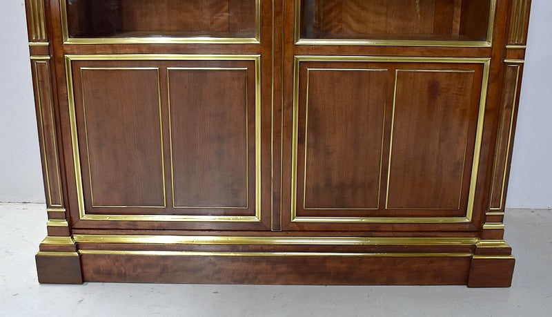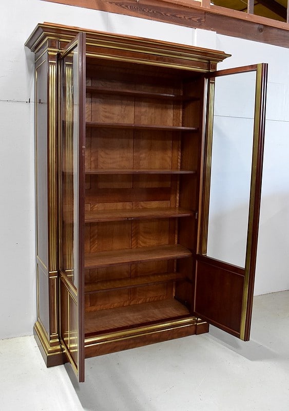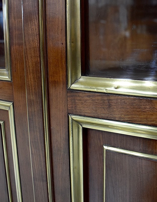 Bibliothèque en Acajou de Cuba massif et plaqué, de style Louis XVI, richement garnie de laiton.