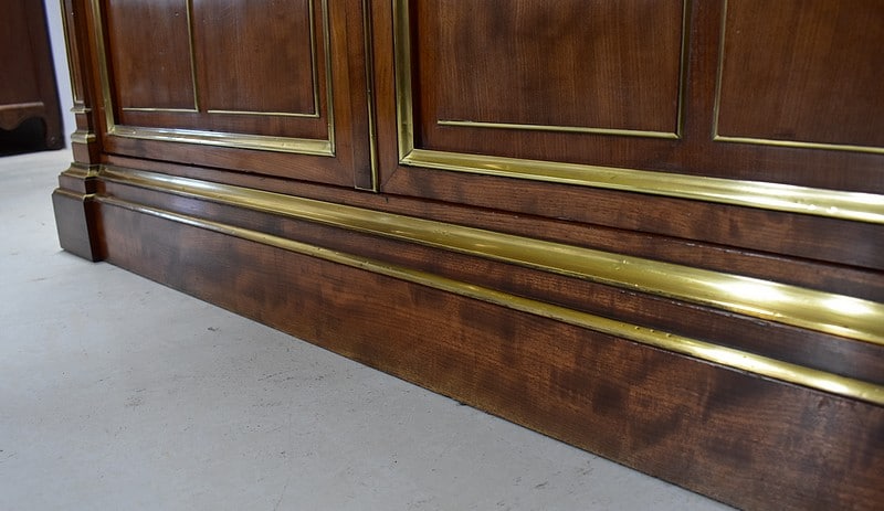 Cet alliage précieux, omniprésent, vient également enjoliver la Corniche, la plinthe, le couvre-joint ou encore les côtés de cette Bibliothèque. On notera d’ailleurs la qualité de sa conception, puisque les panneaux lateraux sont parfaitement alignés avec ceux des façades.