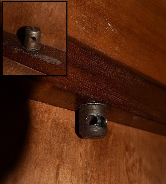 La porte de droite est pourvue d’un verrou en état de fonctionnement à points d’accroches haut et bas et le meuble est fourni avec sa clé.