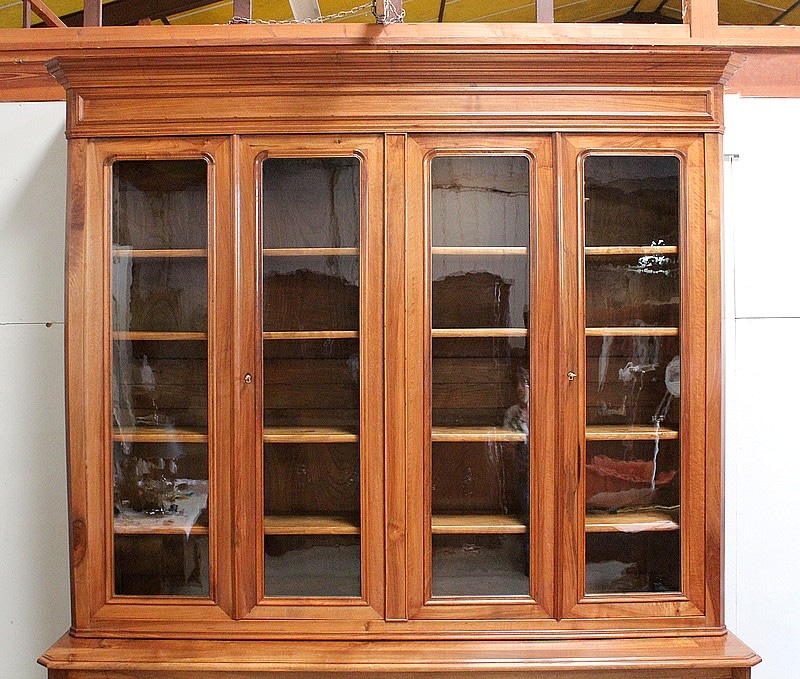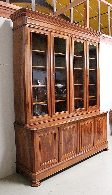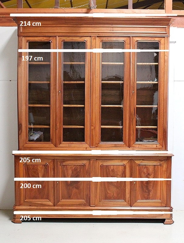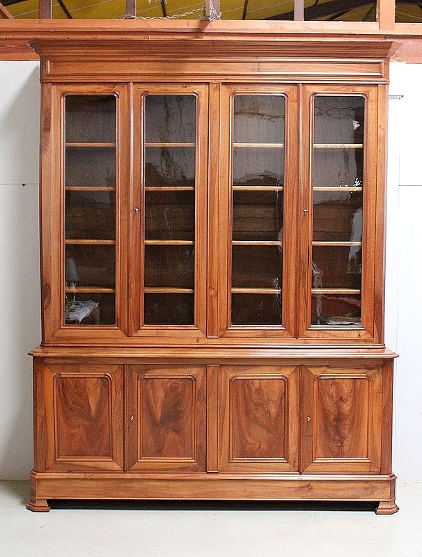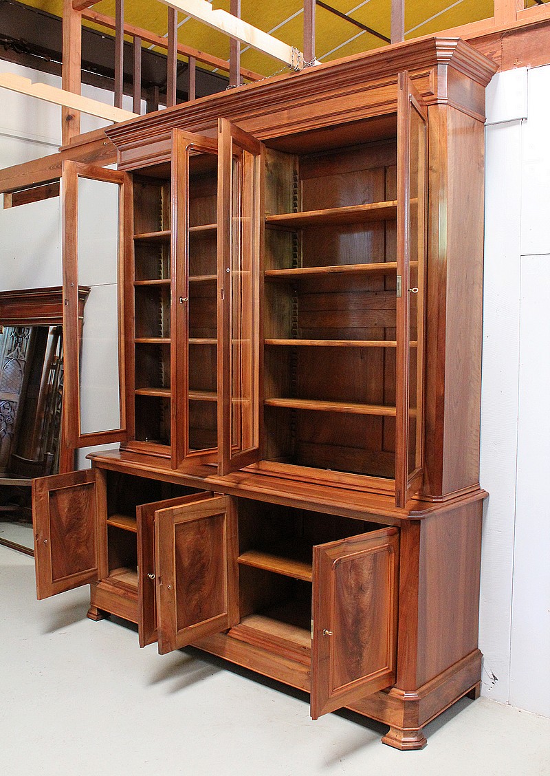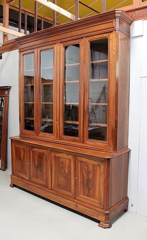Grande et élégante Bibliothèque en Noyer massif composée de deux éléments.