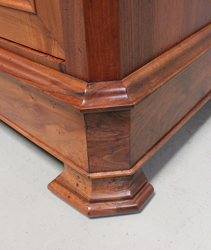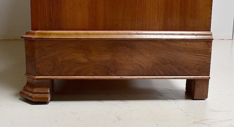 On notera la présence de multiples moulures, sur la Corniche, en bordure du plateau central ou bien encore sur les deux pieds avant, ce qui n’enlève rien à la Sobriété et à la Finesse de cette Bibliothèque.