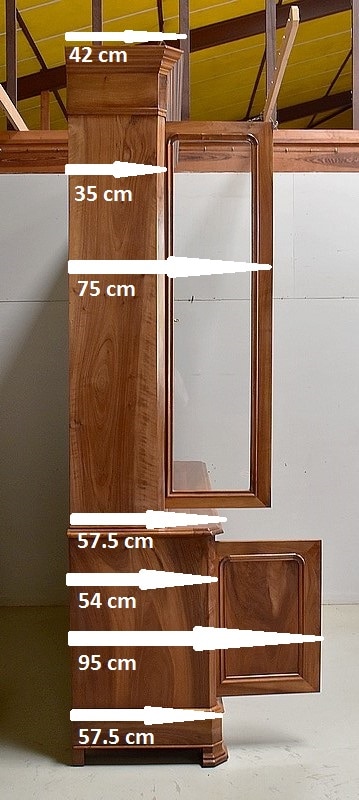 Les Deux Corps se désunissent aisément l’un de l’autre grâce à un système simple de vis de rappels. Le fronton, assemblé en Queue d’Aronde, est également démontable.