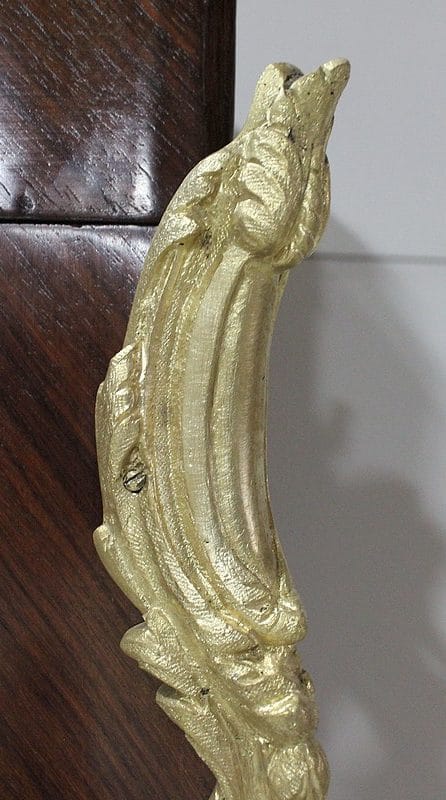 Les montants de façade sont également Généreusement ornementés, puisqu’ils arborent successivement Bronzes Feuillagés, Espagnolettes, et Sabots.