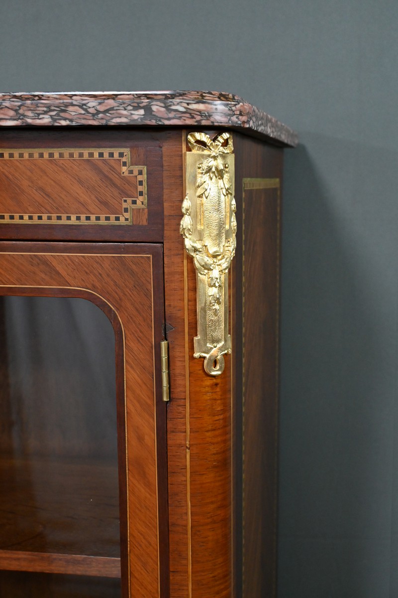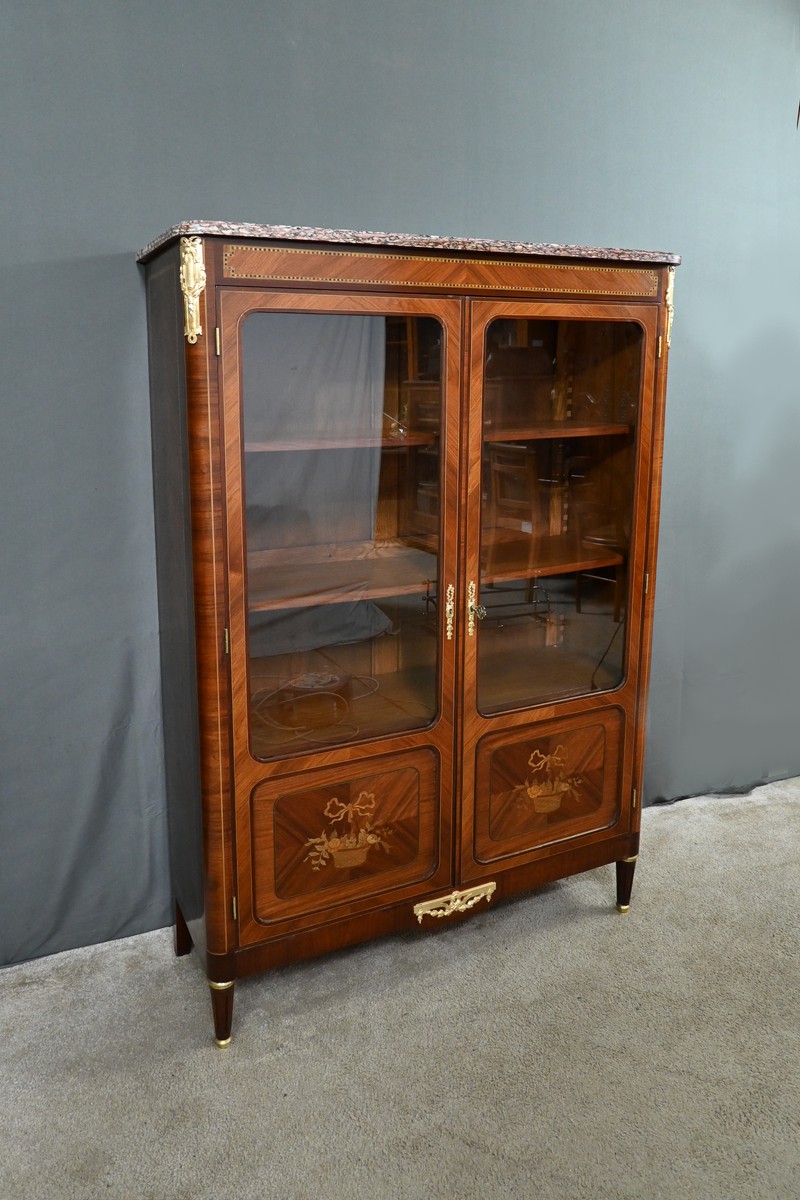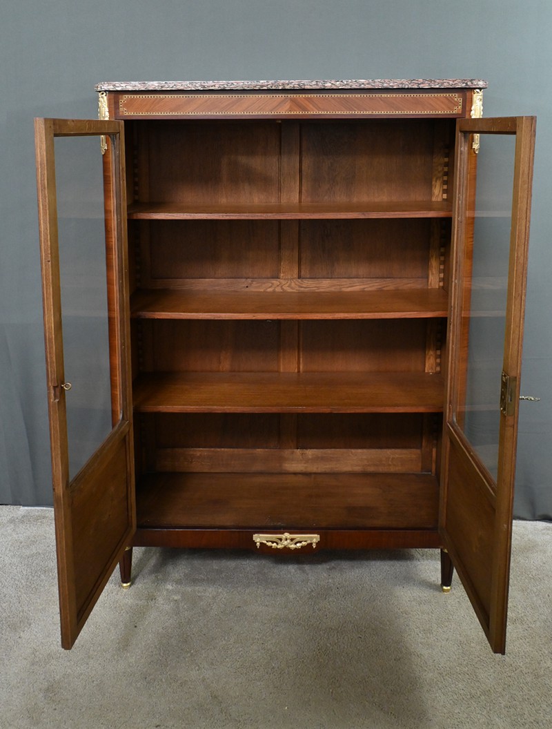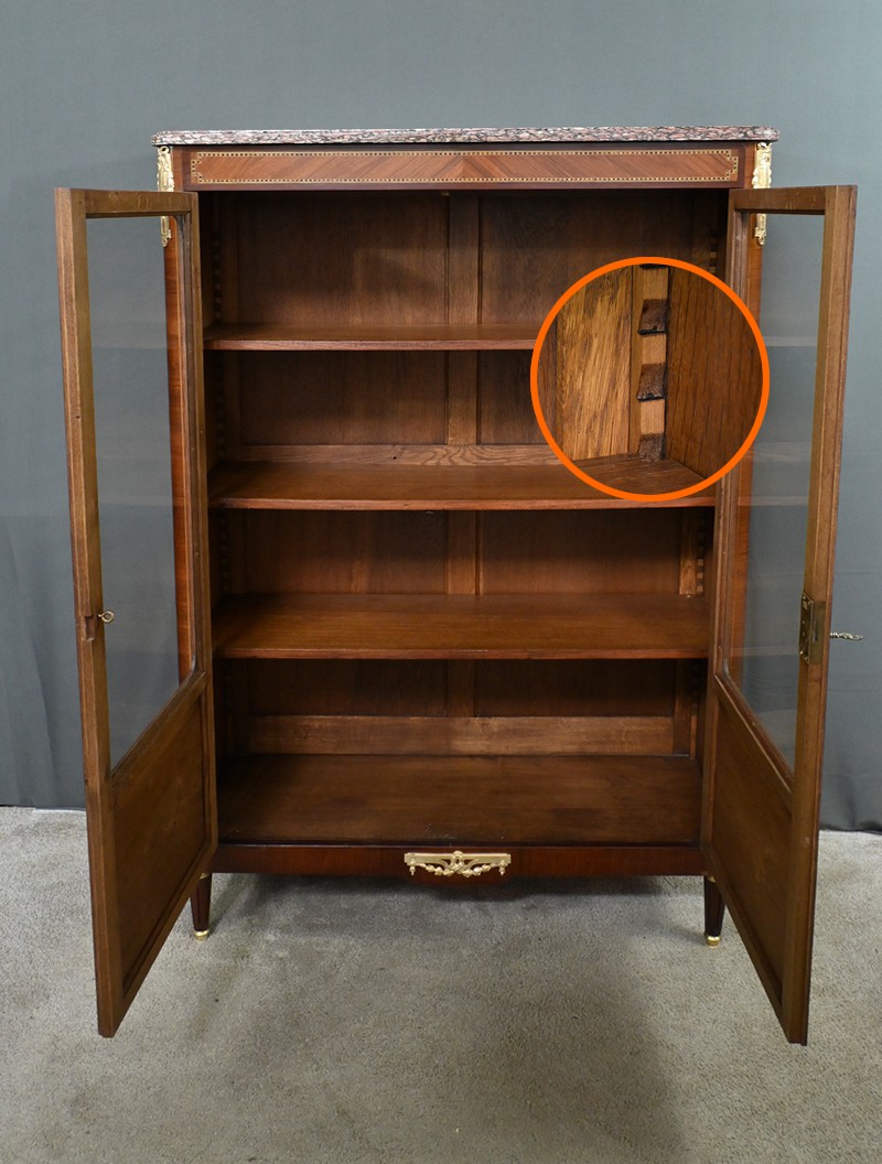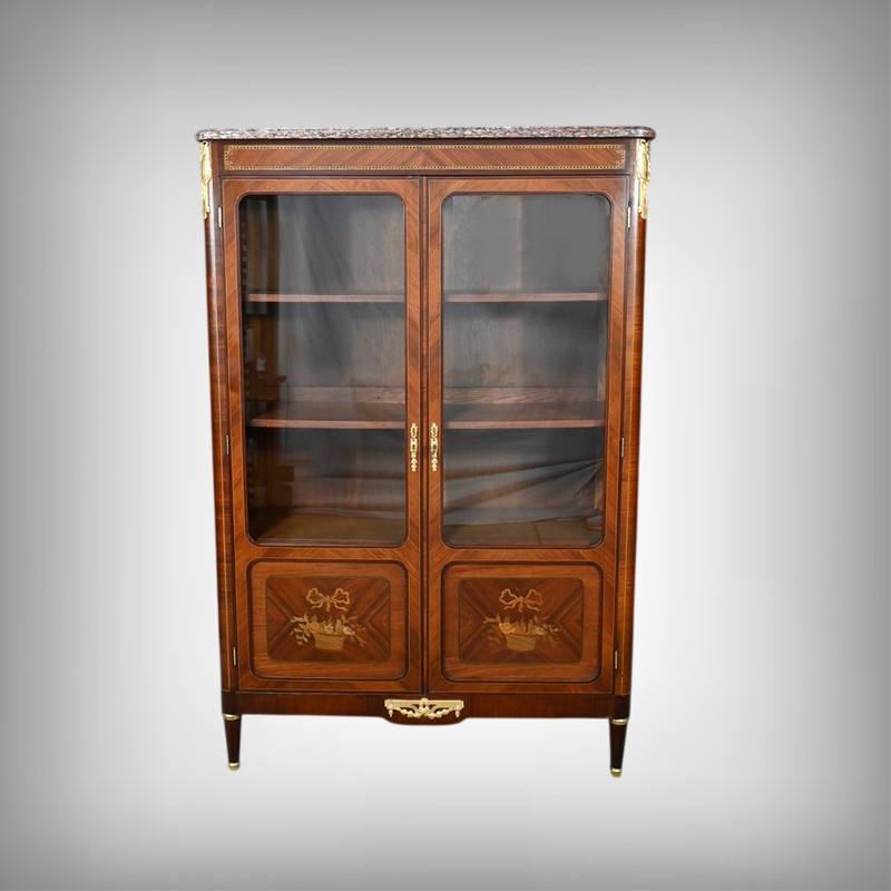 Élégance et finesse caractérisent cette remarquable bibliothèque de style Louis XVI, témoin de l’excellence artisanale du début du XXe siècle.