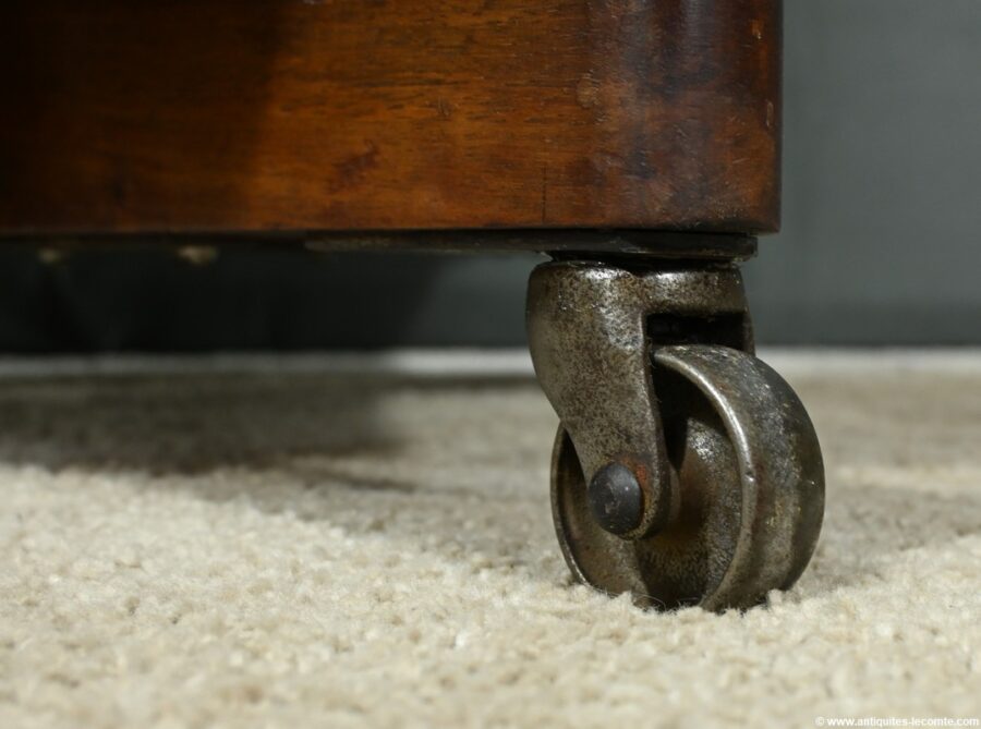 Ce mécanisme se termine par de petites roulettes en métal, facilitant le déplacement du meuble.