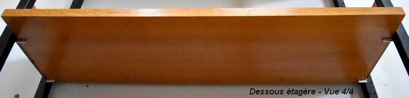 Cinq Tablettes plaquées en Chêne offrent une large capacité de rangement, et présentent sur la partie arrière une zone avec Encoches, dans laquelle des photos ou autre peuvent être glissées et affichées.
