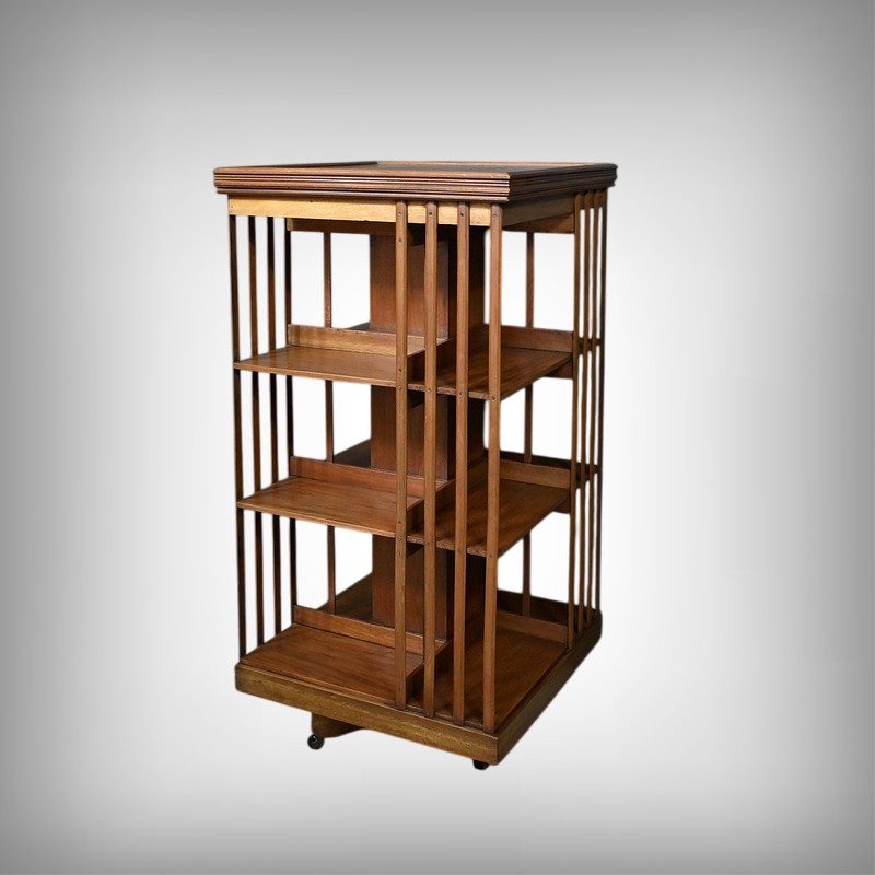 Grande bibliothèque pivotante en acajou, incarnant le charme et la sophistication du mobilier classique britannique. Avec son design ajouré et ses trois niveaux de rangement, elle permet d’organiser vos ouvrages tout en conservant une esthétique raffinée. Son piétement à roulettes assure une mobilité aisée, offrant une flexibilité idéale pour ajuster son emplacement selon vos besoins. Cette bibliothèque est bien plus qu’un simple meuble : c’est un véritable élément décoratif et fonctionnel, parfait pour enrichir un bureau, une salle de lecture ou un salon avec une touche d’élégance et d’authenticité.