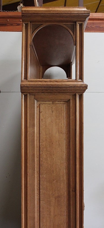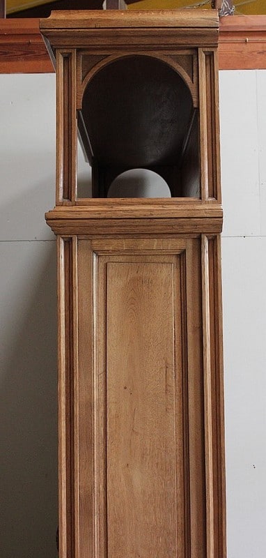 Elle est surmontée d’un casier ouvert avec découpes en arc de cercle de chaque côté , sa hauteur est de 38cm.