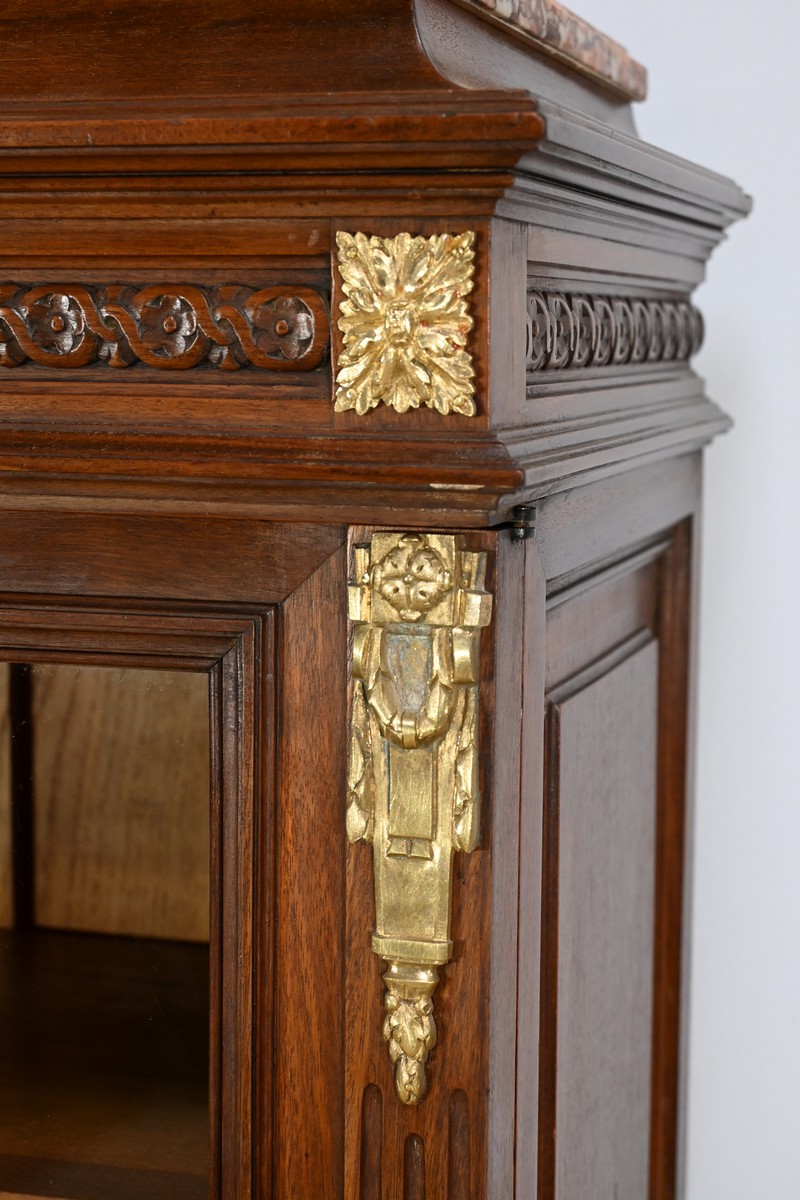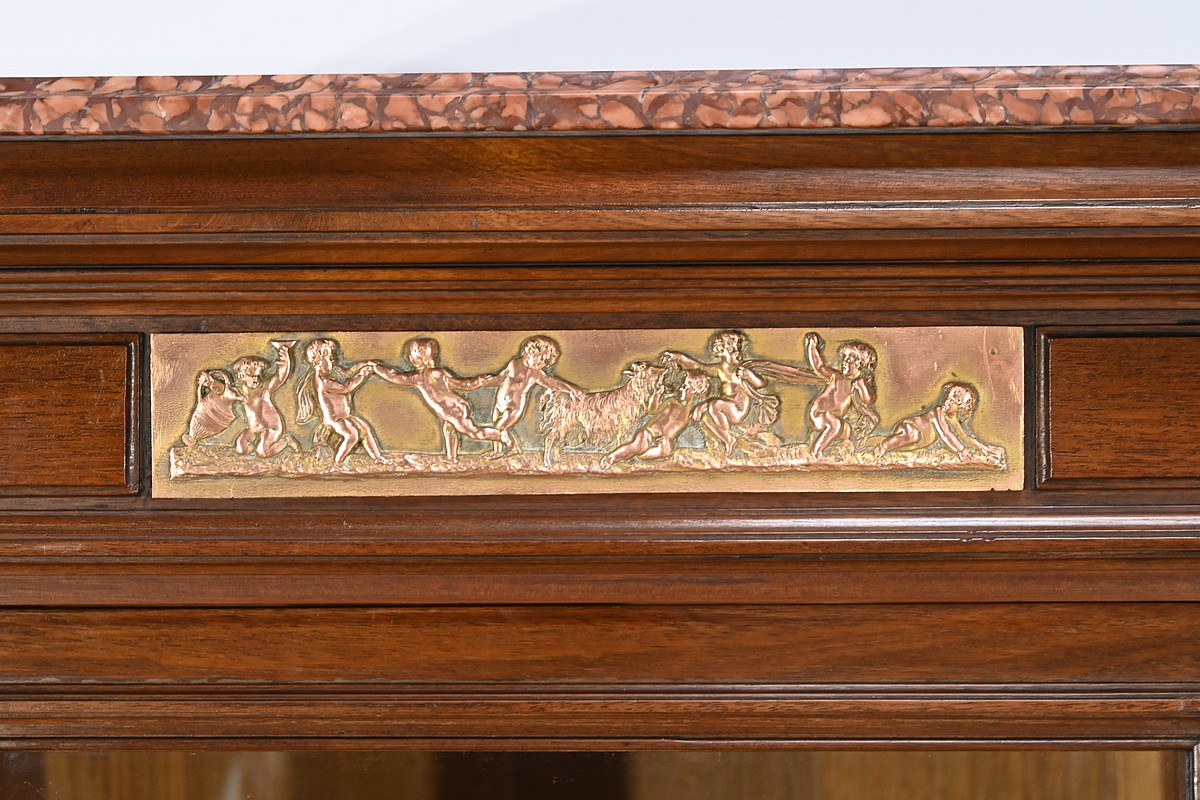 Le meuble est couronné de trois plaques de marbre brèche de Guillestre, offrant une finition luxueuse.