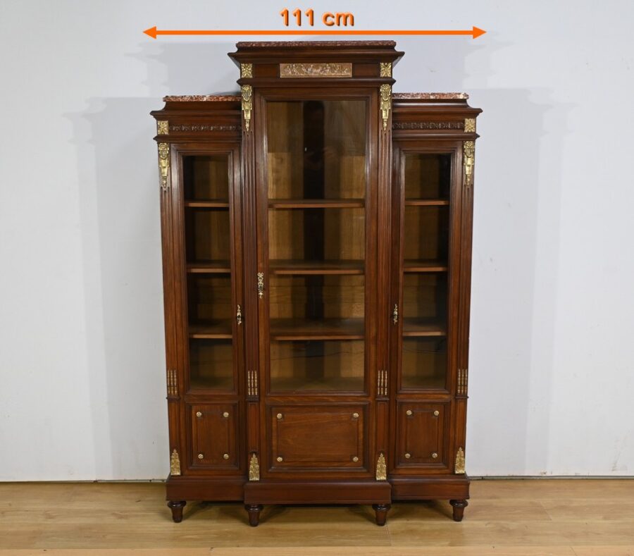Cette bibliothèque incarne l’élégance et le savoir-faire artisanal du début du XXe siècle, faisant d’elle une pièce maîtresse pour tout amateur de mobilier ancien.