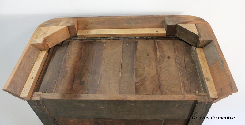 Ce mobilier est surmonté d’une corniche moulurée de manière douce et arrondie.
