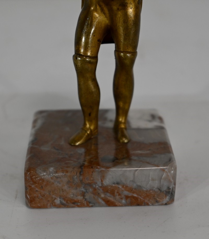 Ce bronze, au petit dimensionnel mais aux détails précis, décorera subtilement un bureau, en pouvant également servir de presse-papiers, à l’occasion.