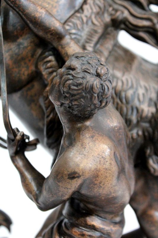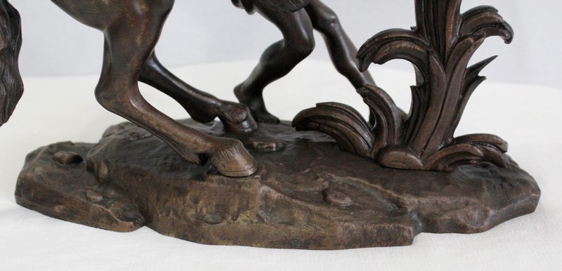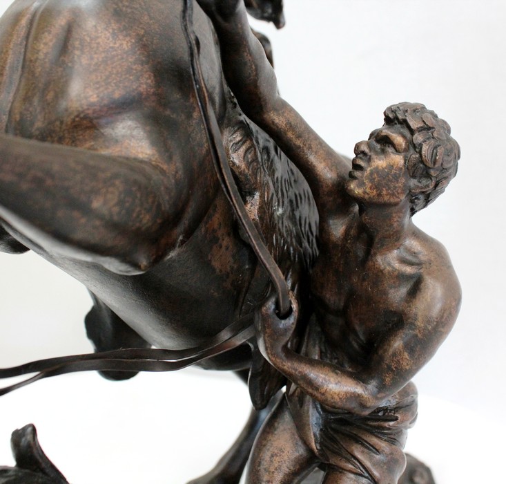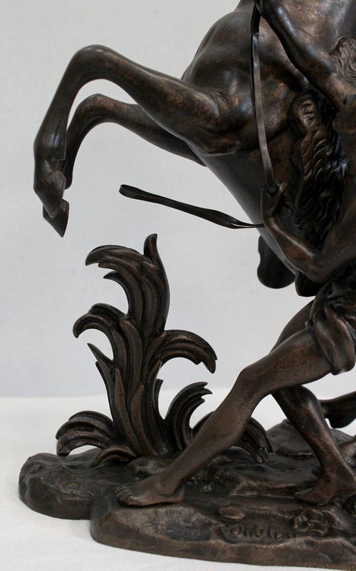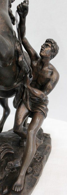 L’artiste a su transcrire avec précision l’état de nervosité de l’animal, et la force sauvage de sa posture. On notera la finesse des détails physionomiques de l’équidé et de l’homme ici sculptés : la crinière au vent, les muscles bandés, le combat qu’ils semblent mener tous deux.
