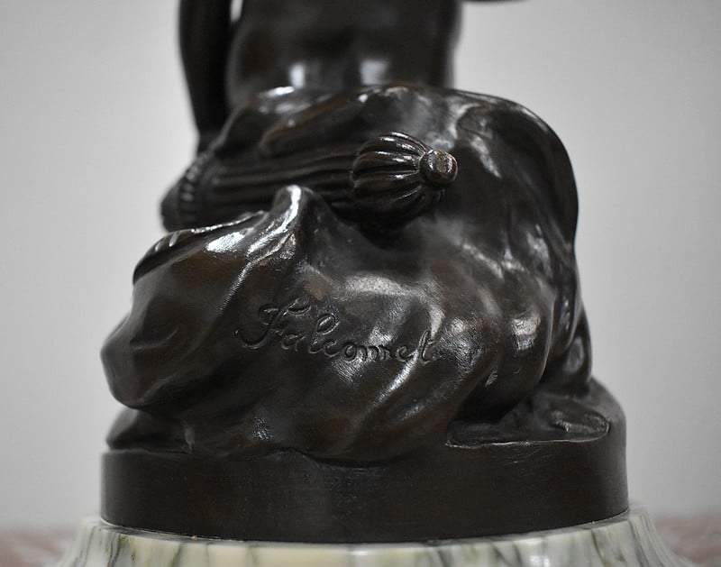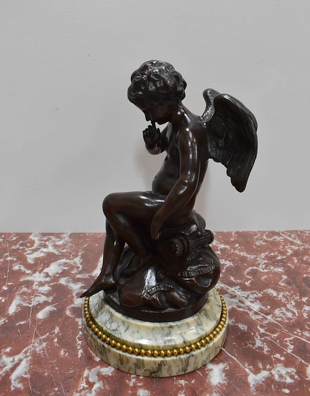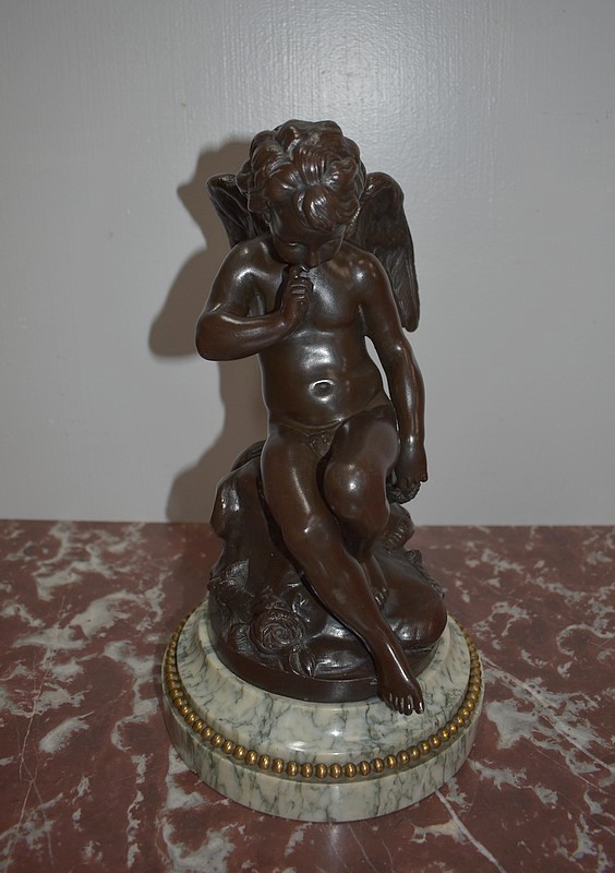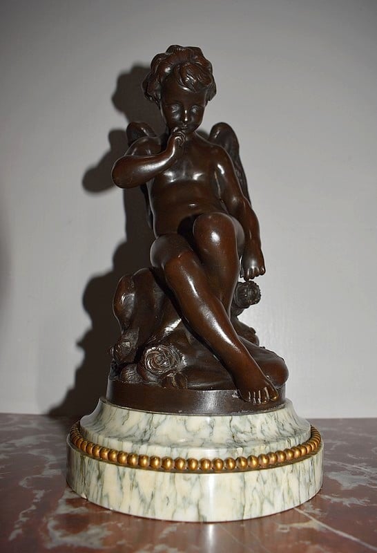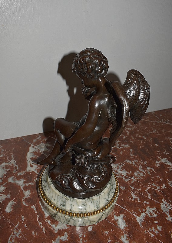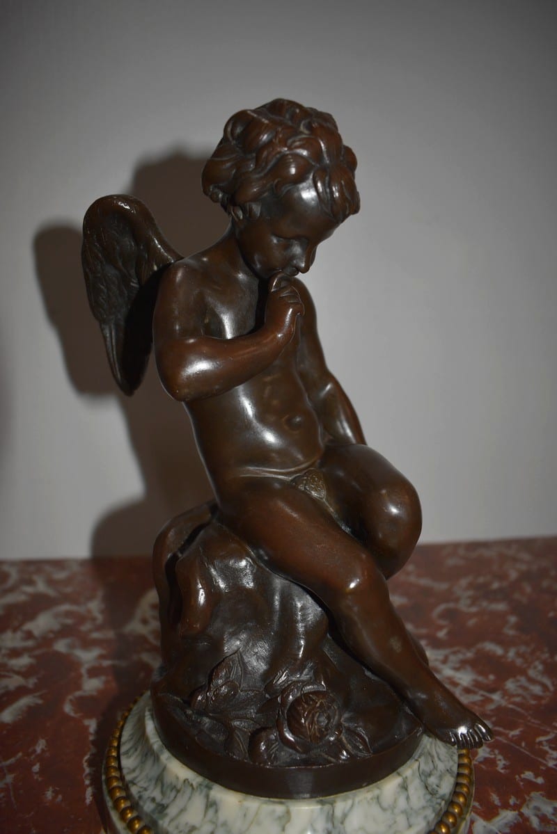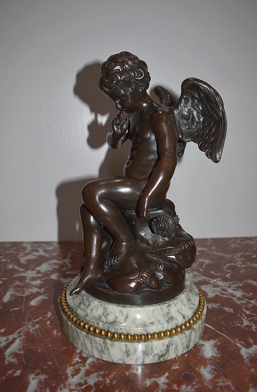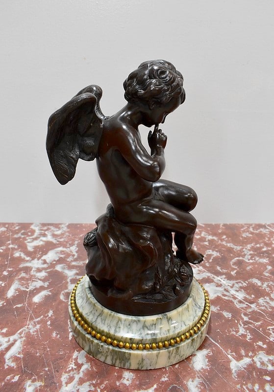 Bronze à patine brune ‘Amour pensif ‘ d’après Etienne-Maurice FALCONNET (1716-1791),oeuvre célèbre, commandée par Mme de Pompadour dont le modèle en plâtre fut exposé au Salon de 1755.