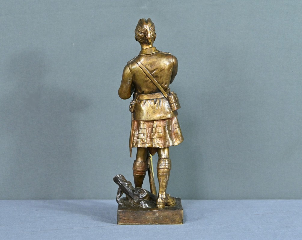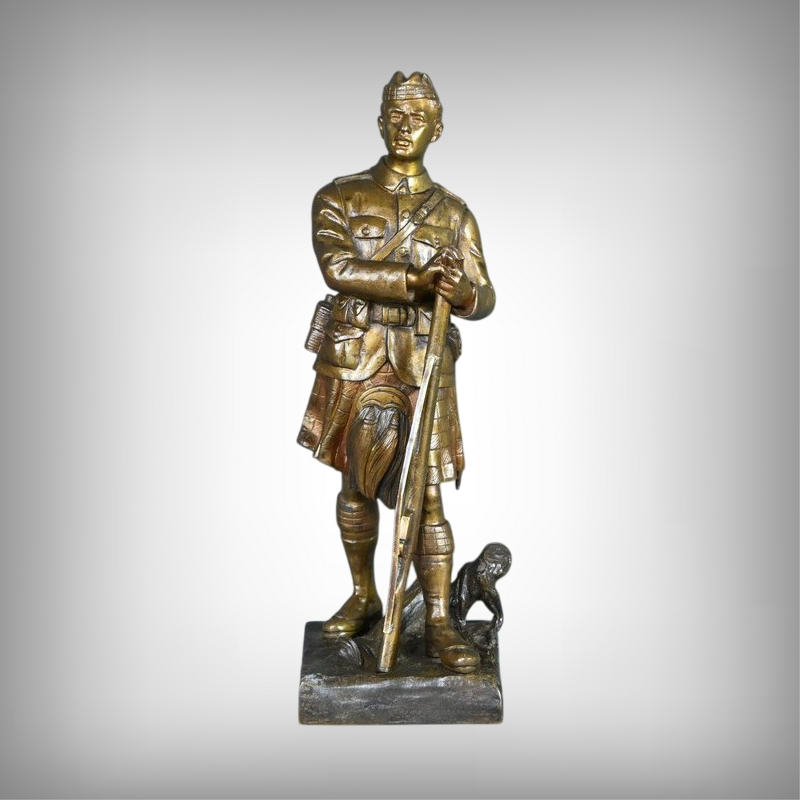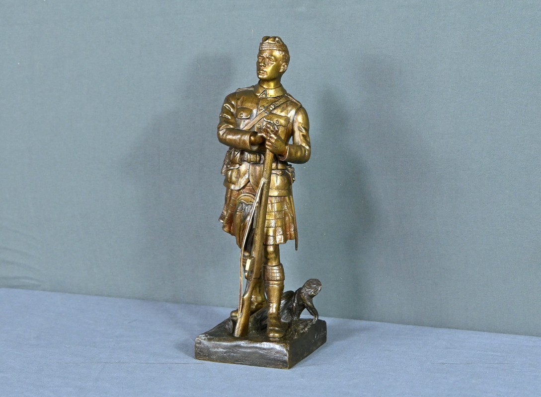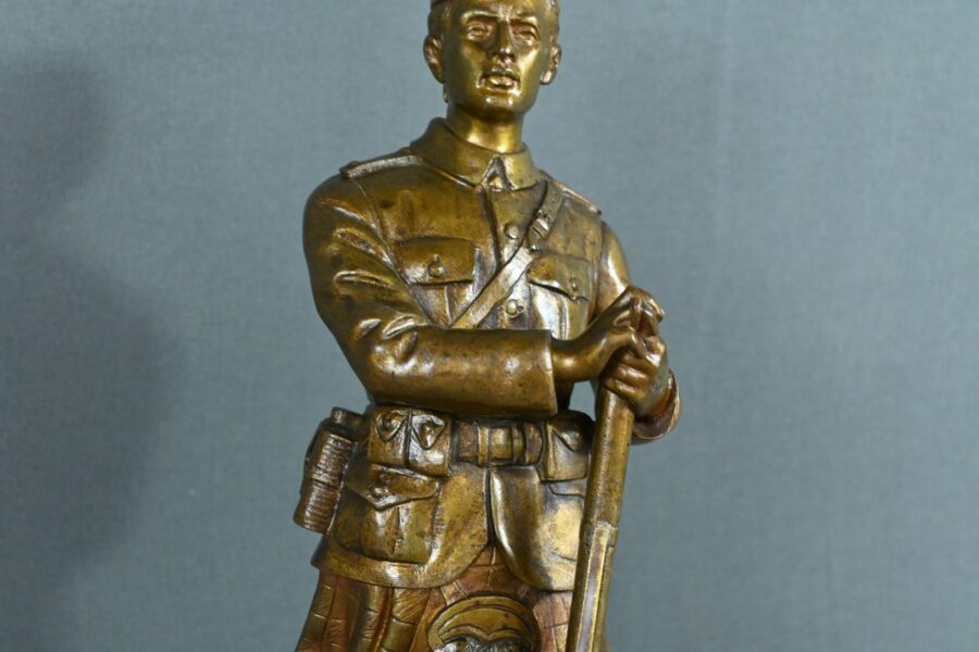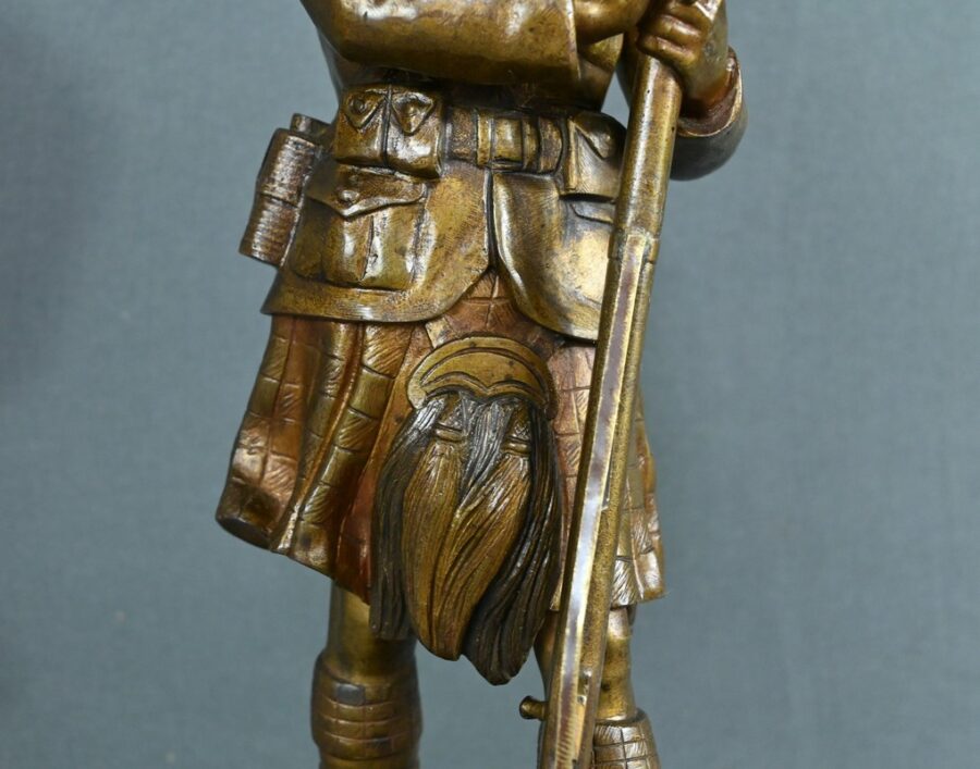 Ce bronze témoigne non seulement du savoir-faire de l’artiste, mais aussi de son sens de la narration visuelle, rendant hommage aux soldats écossais et à leur histoire.