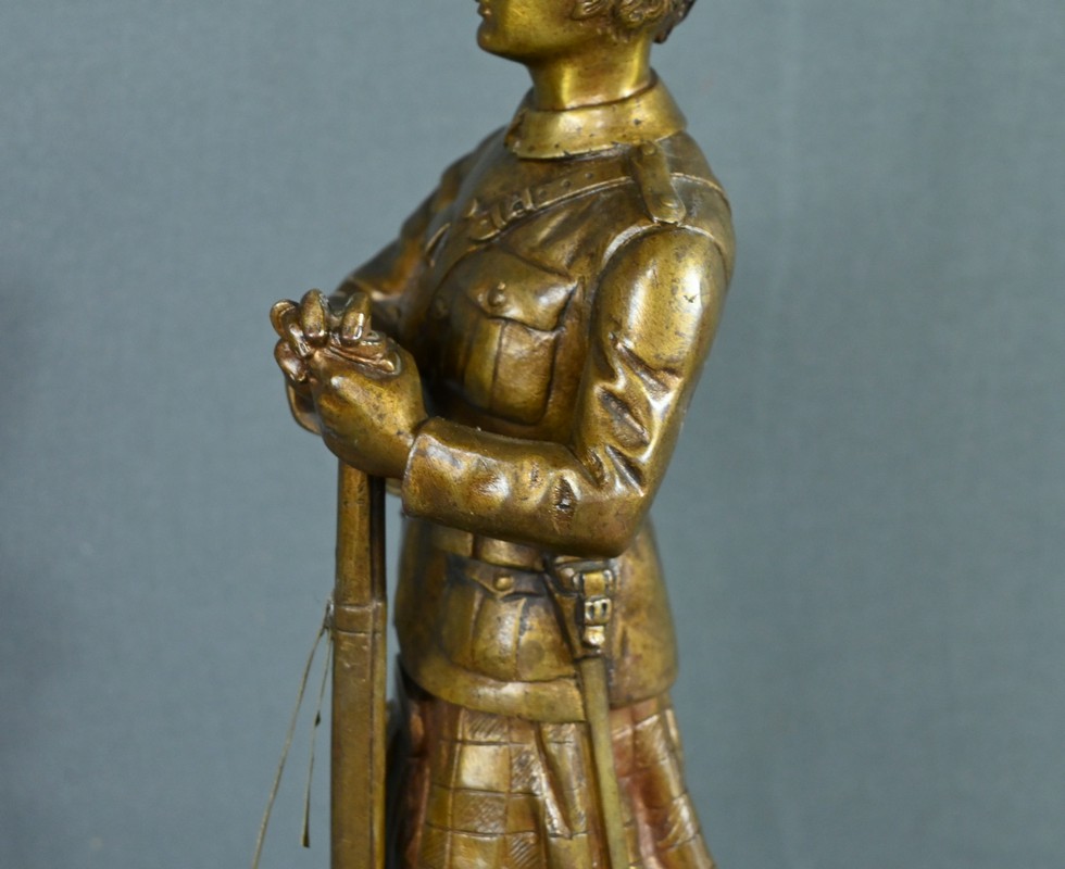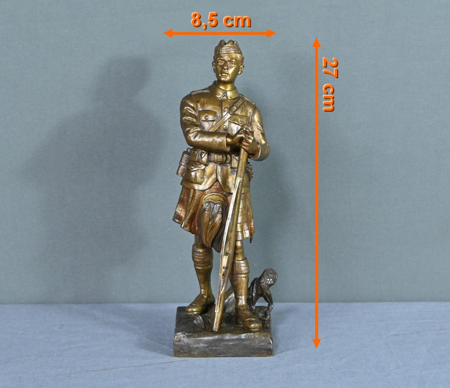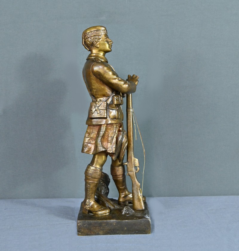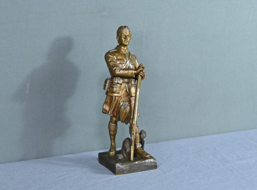 Ce bronze témoigne non seulement du savoir-faire de l’artiste, mais aussi de son sens de la narration visuelle, rendant hommage aux soldats écossais et à leur histoire.