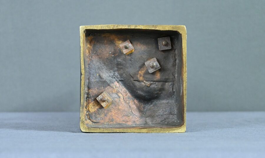 Le socle rectangulaire sur lequel repose la sculpture confère à l’ensemble une stabilité et une élégance qui mettent en valeur le travail minutieux du bronze.