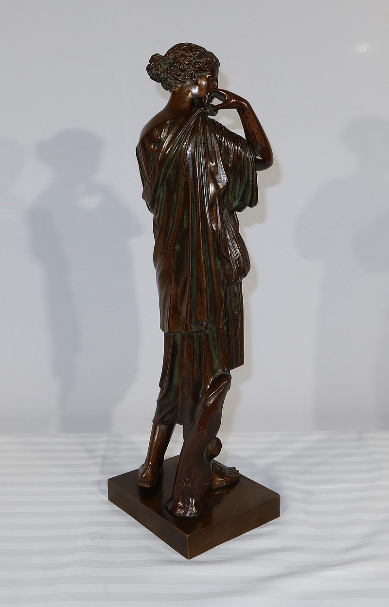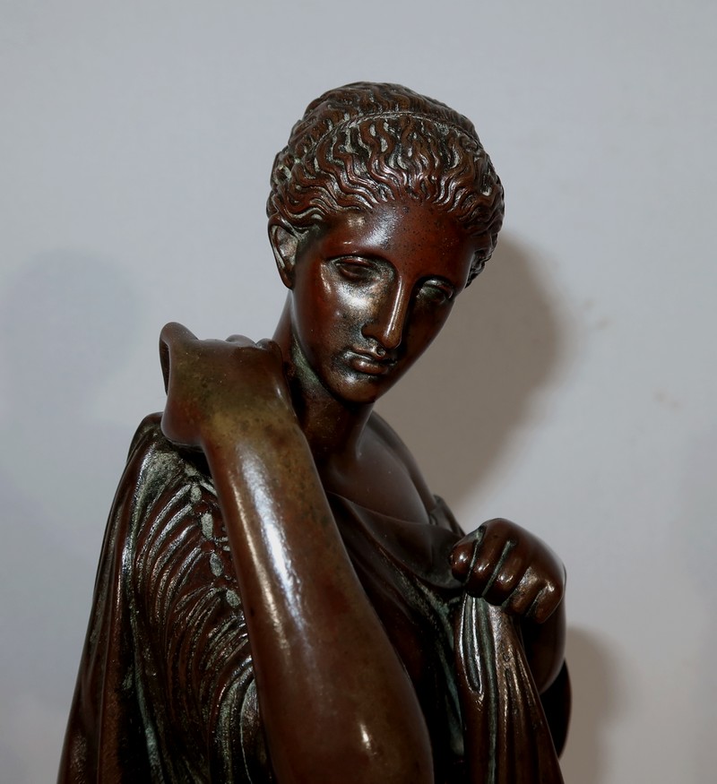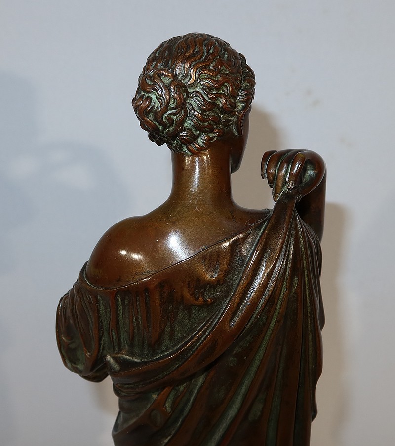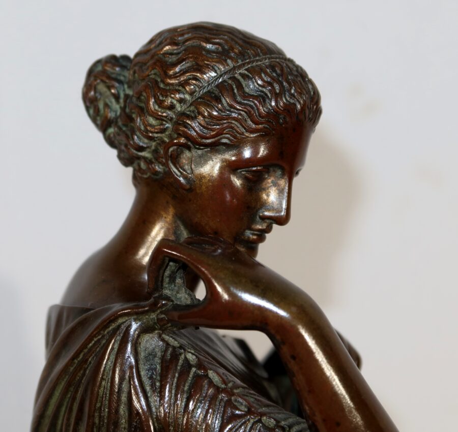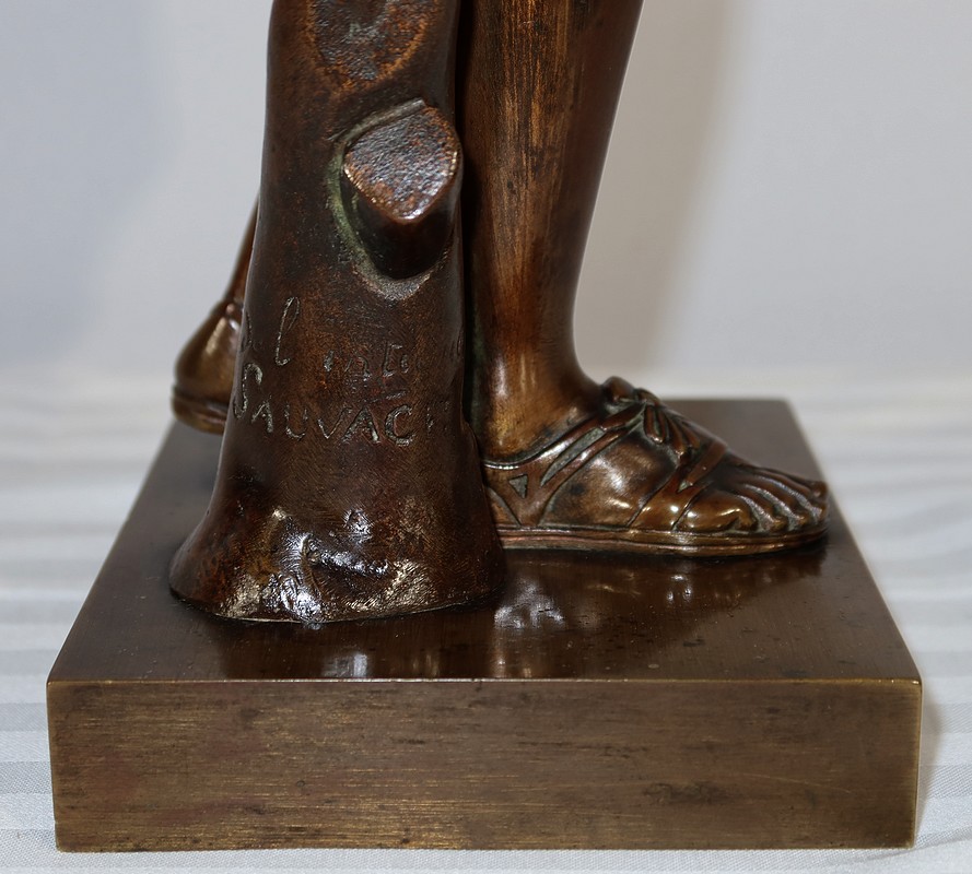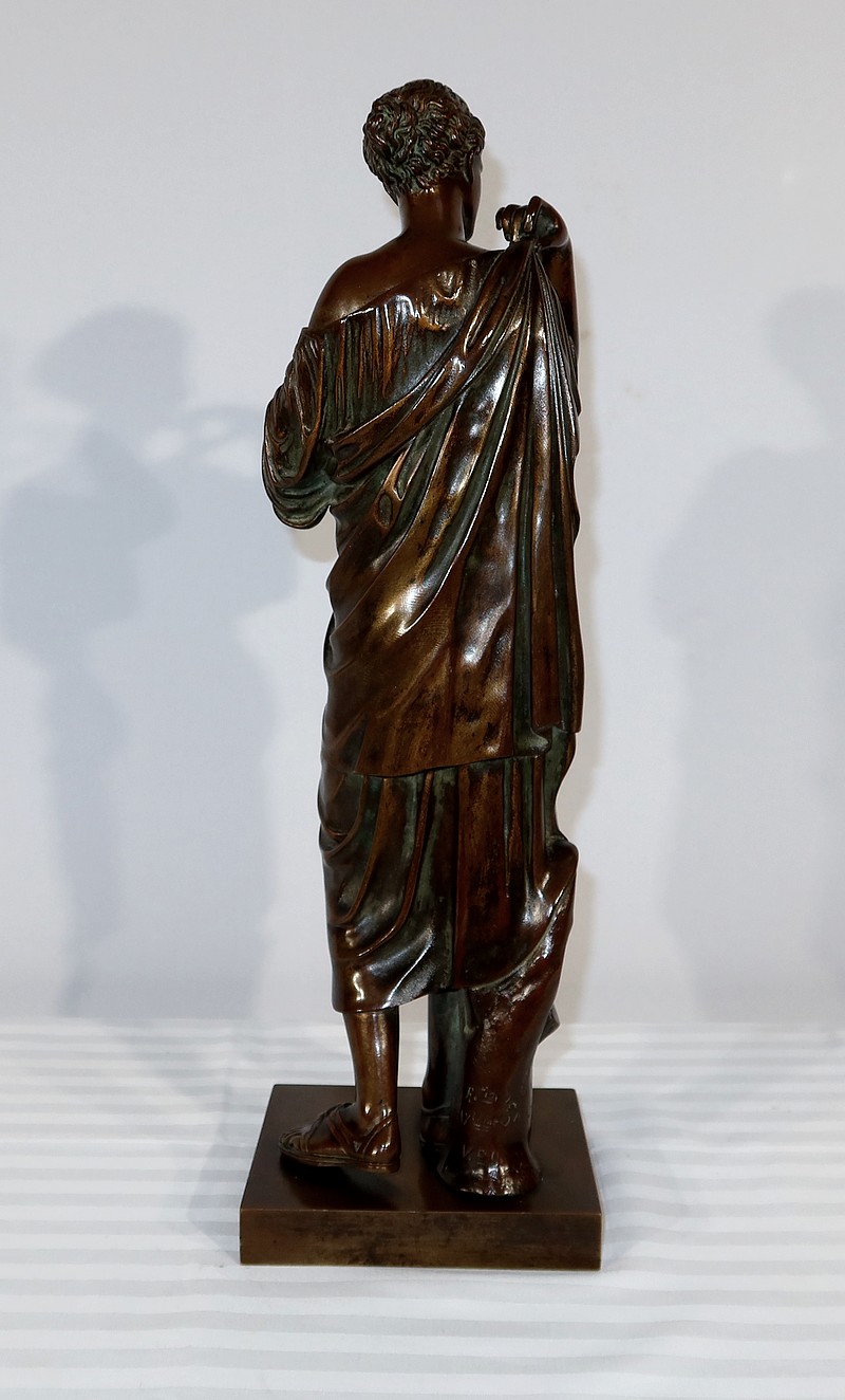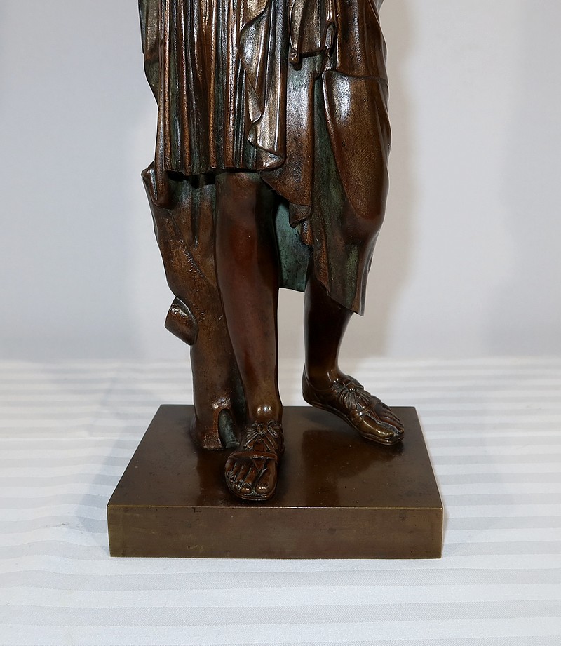 Épreuve en bronze à patine brune signée Sauvage, réplique de la sculpture romaine en marbre de l’époque de l’empereur Tibère, attribuée à Praxitèle et découverte lors des fouilles en 1792 à Gabies, en Italie, et conservée au musée du Louvres.