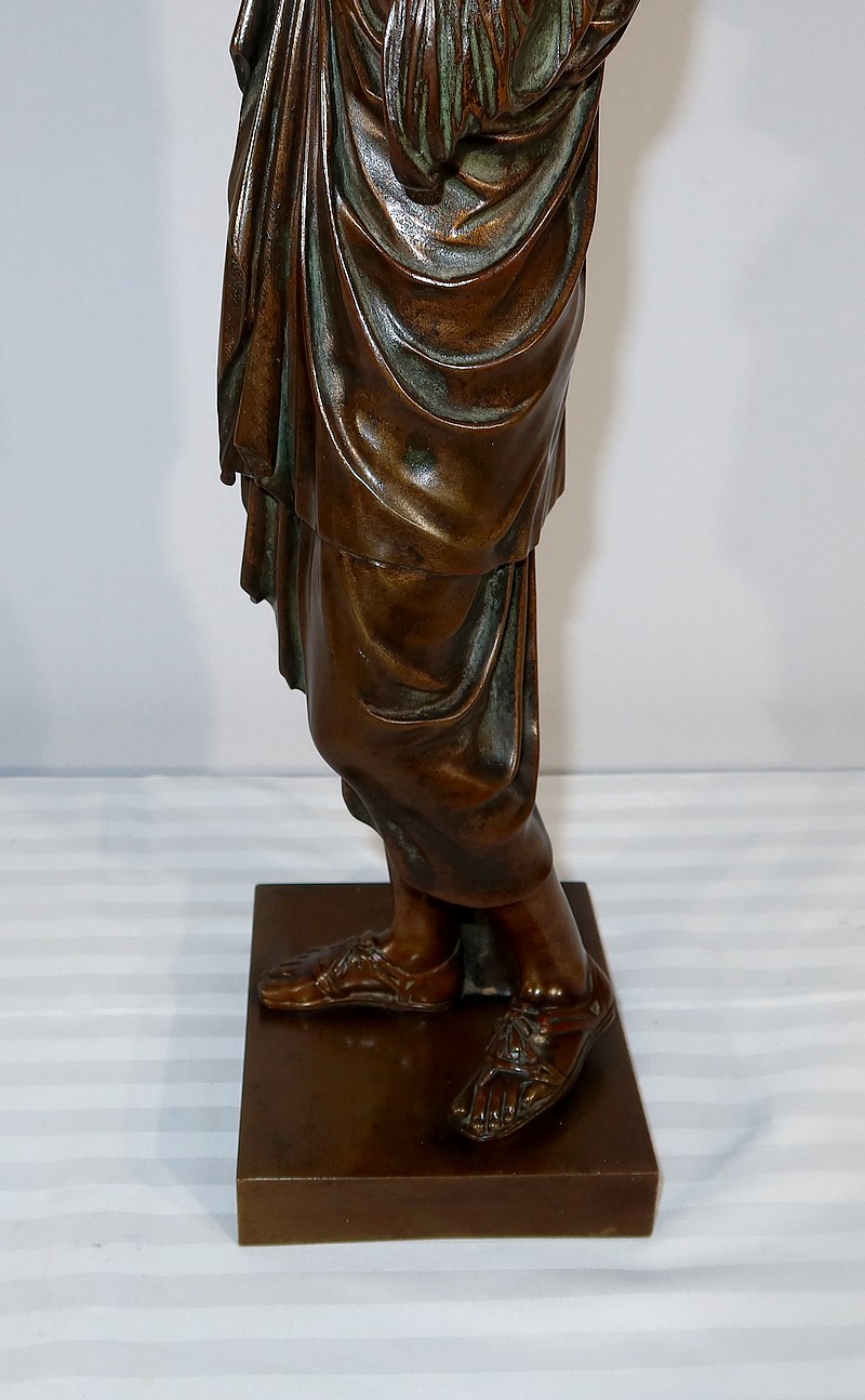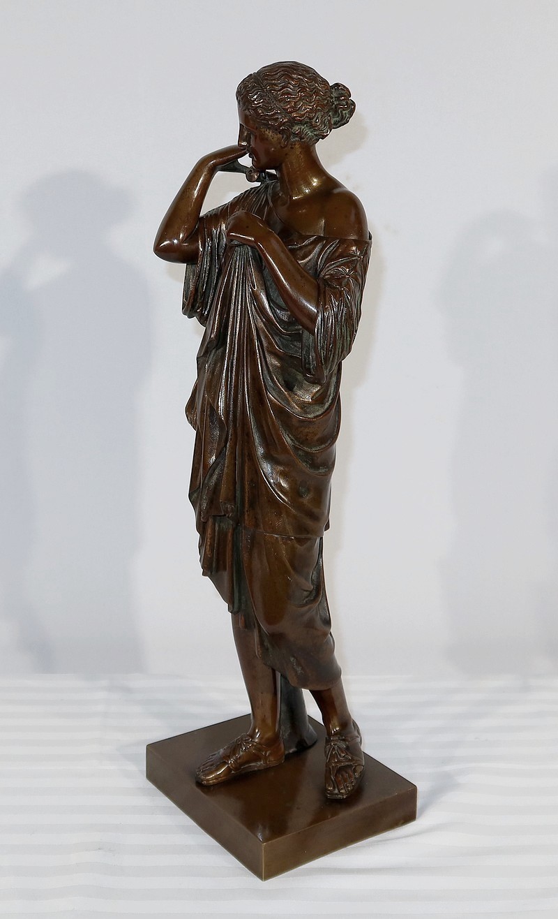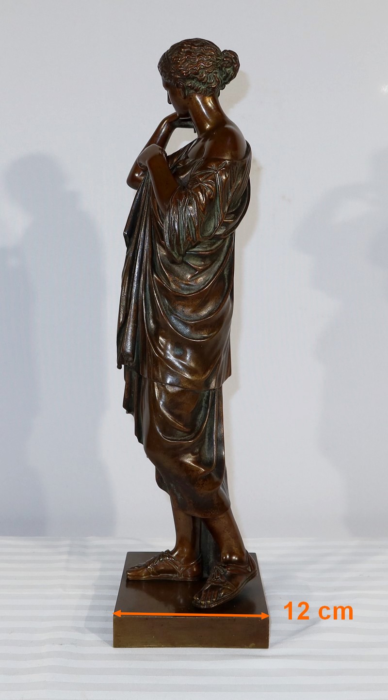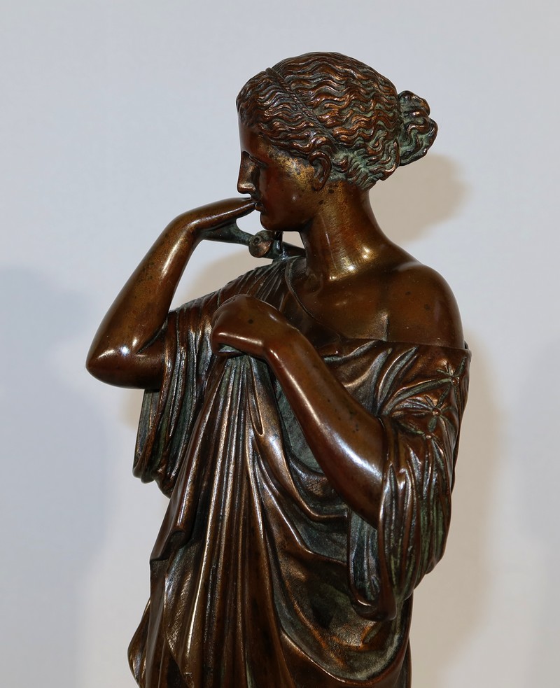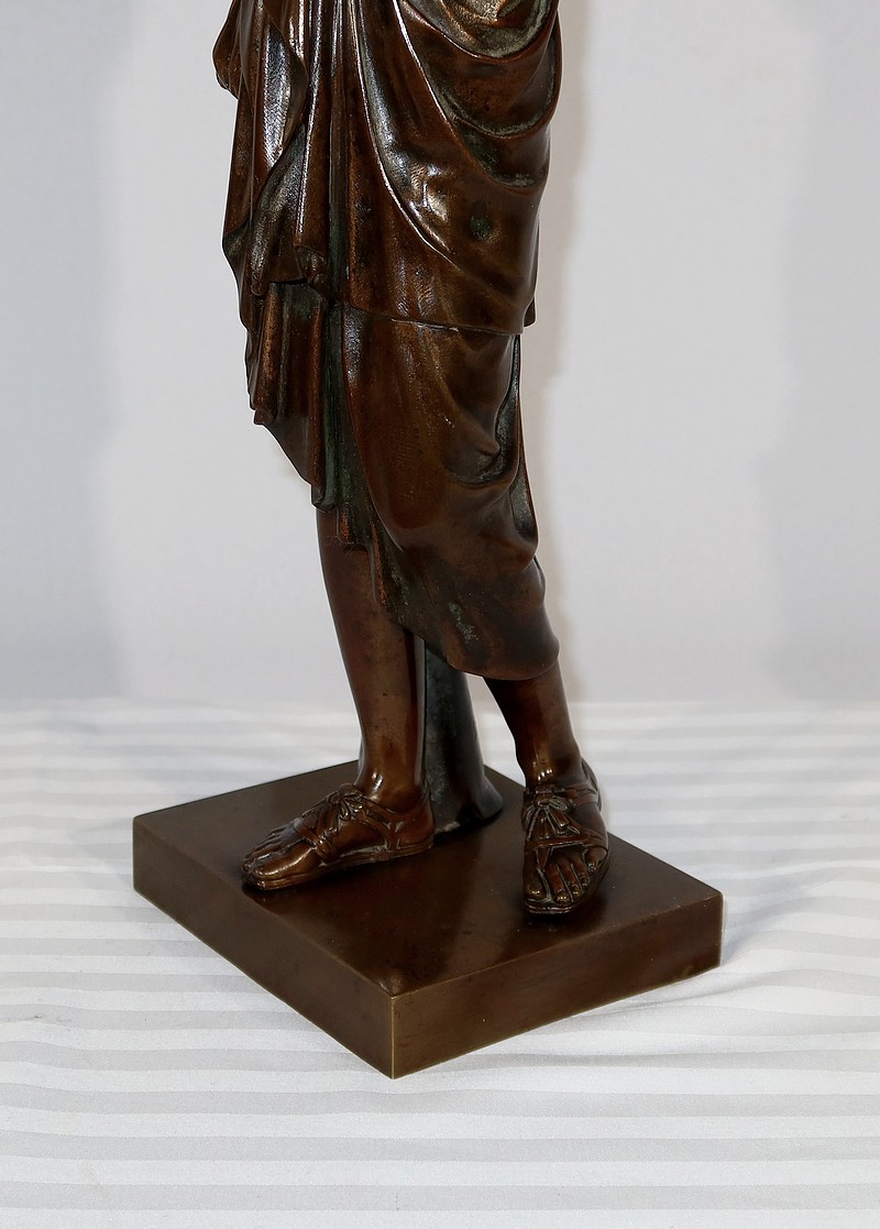Épreuve en bronze à patine brune signée Sauvage, réplique de la sculpture romaine en marbre de l’époque de l’empereur Tibère, attribuée à Praxitèle et découverte lors des fouilles en 1792 à Gabies, en Italie, et conservée au musée du Louvres.
