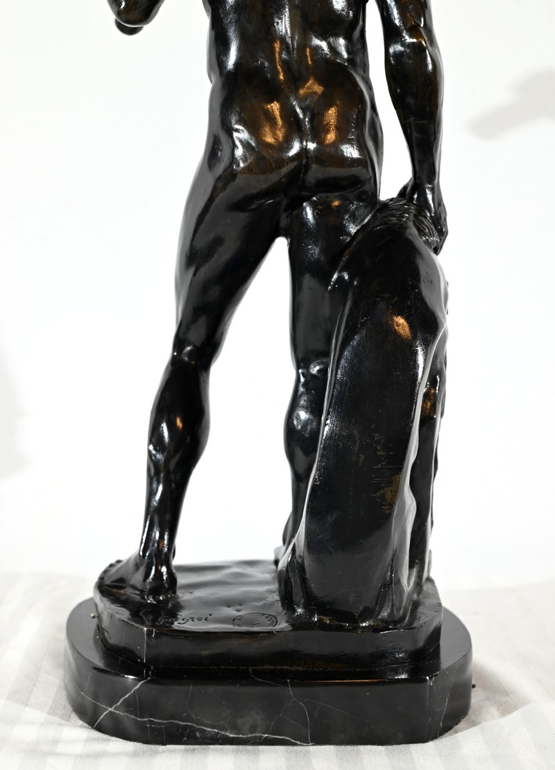 Bronze à patine noire signé du sculpteur Gregroi (XIXe) et estampillé Antique Bronzes 68.