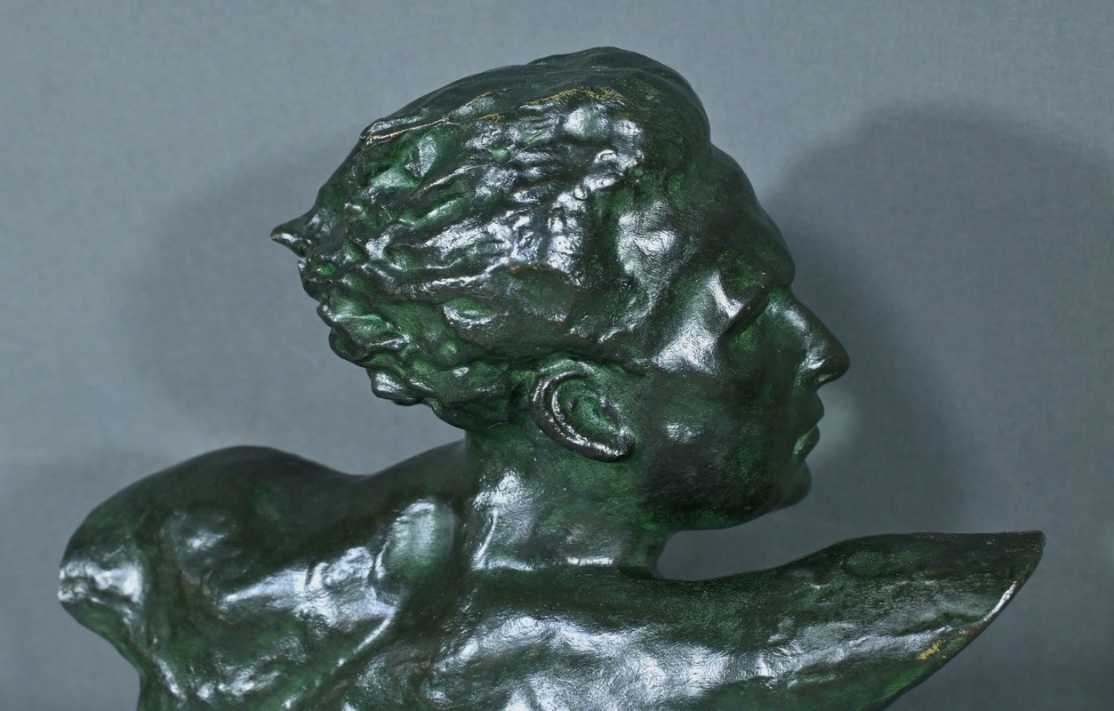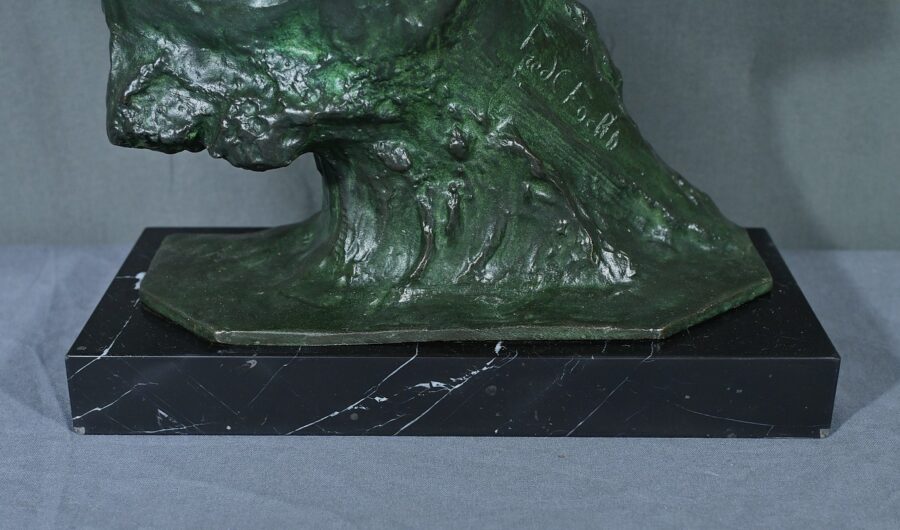 Frédéric C. Focht (1879-1937) est né à Paris en 1879 et a étudié sous le célèbre sculpteur Falguière. Son talent remarquable a été reconnu au début de sa carrière, exposant au Salon des Artistes Français et remportant la très convoitée médaille d’honneur en 1900 à l’âge de 21 ans. Figure importante du mouvement Art déco, cet artiste qui fût également ténor à l’opéra, meurt en 1937.