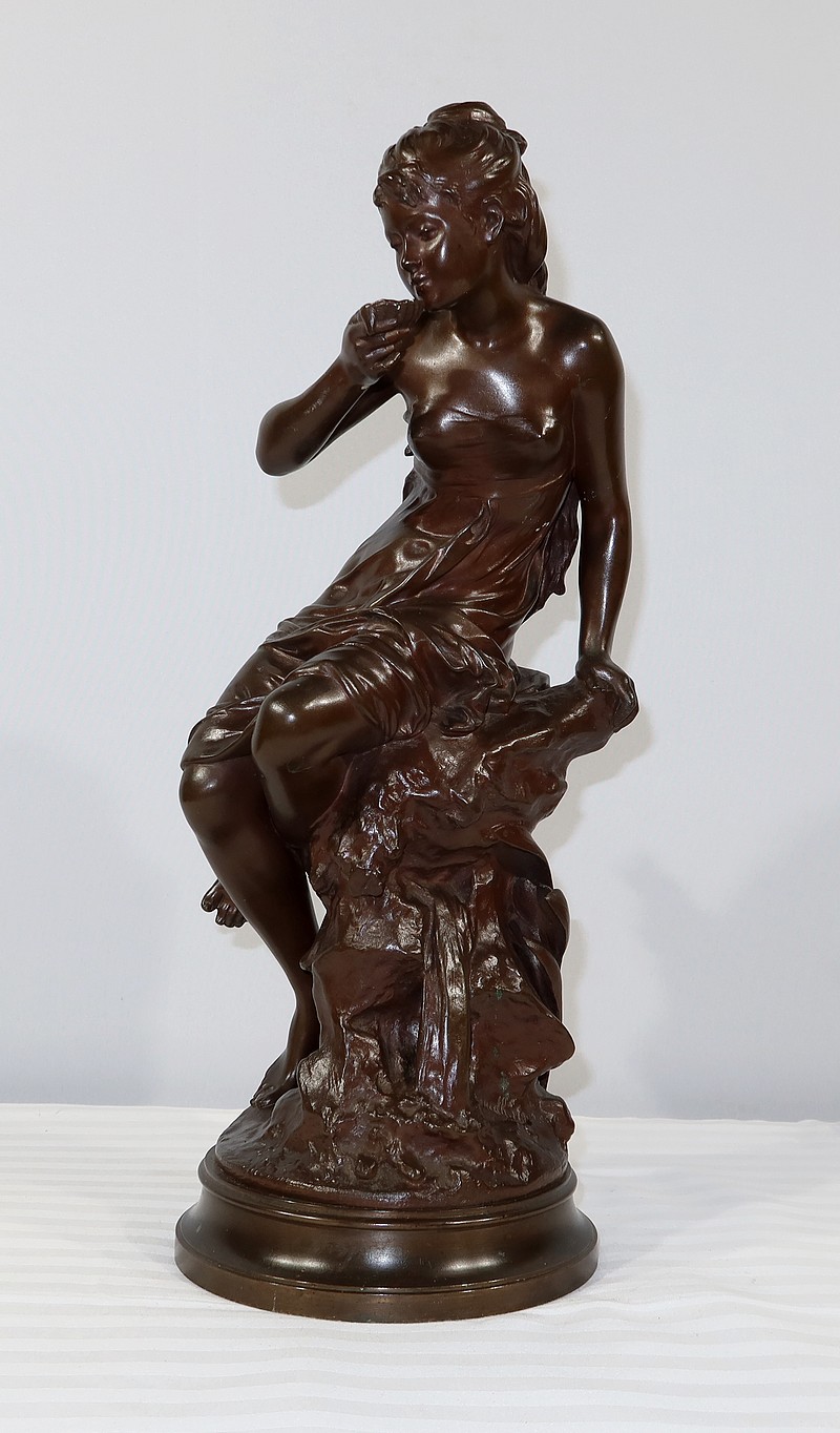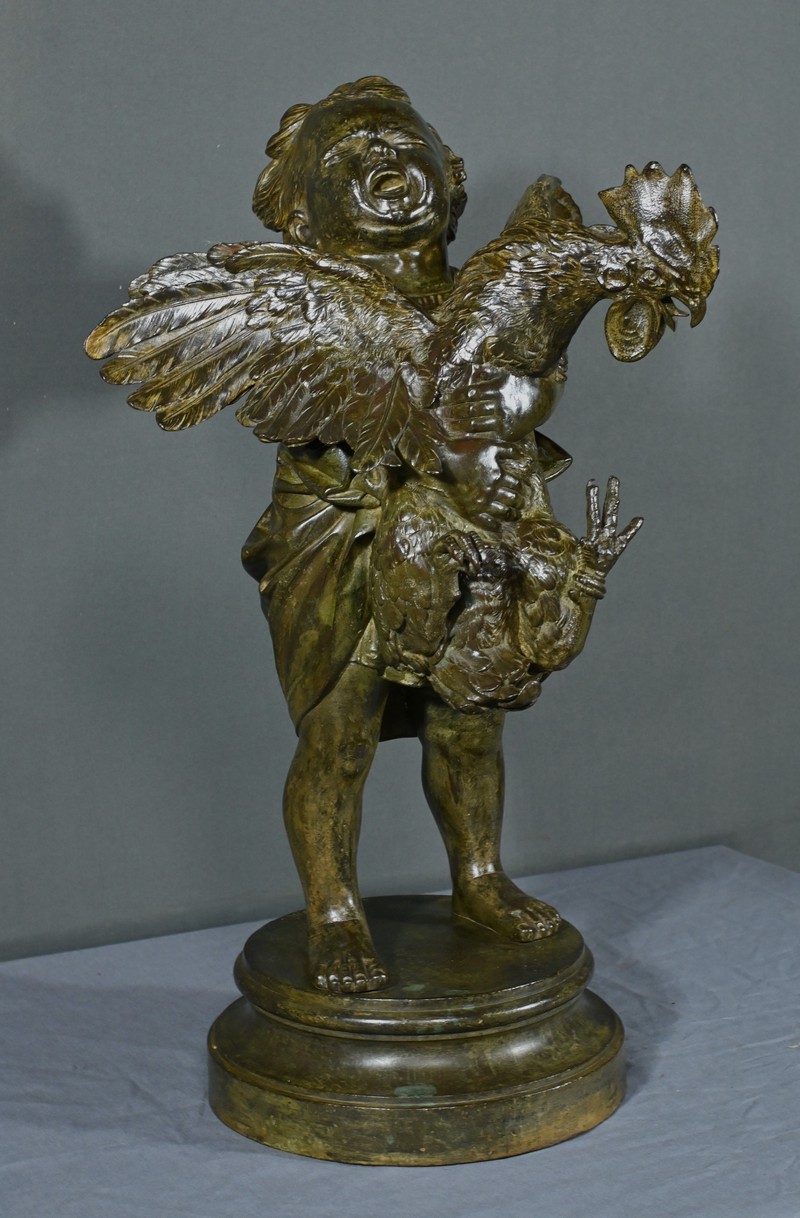 Bronze à Patine Brune sur Socle en Marbre Noir représentant un jeune Caddie portant le sac d’un Joueur de Golf.