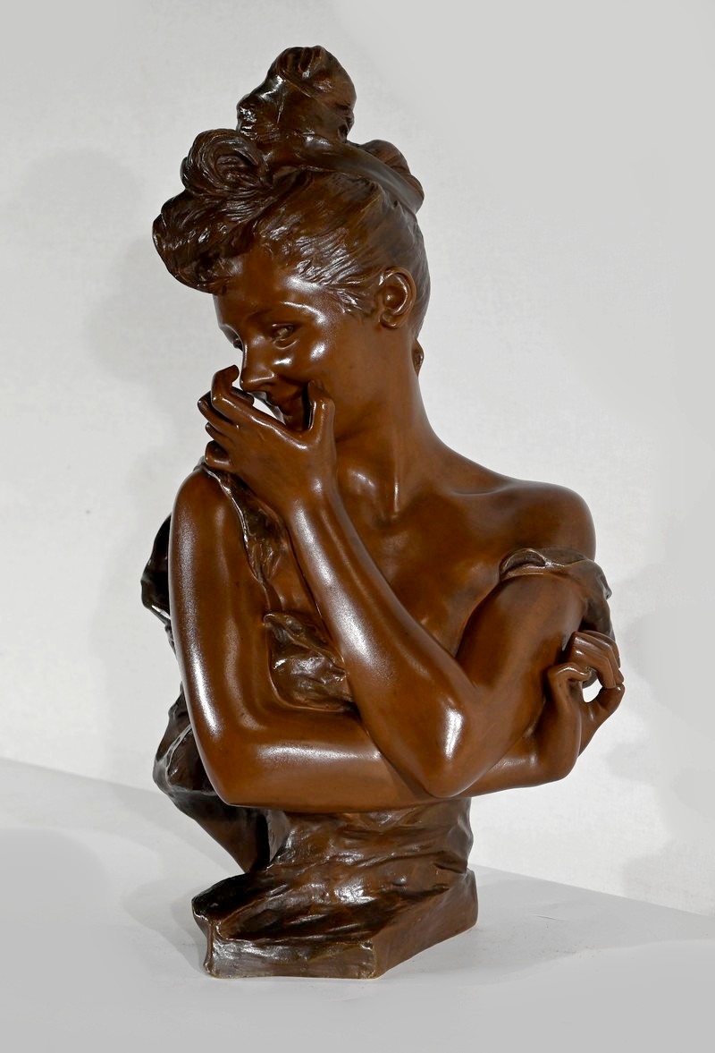 L’artiste réalise ici une œuvre touchante figurant le buste d’une jeune Parisienne souriante et malicieuse.