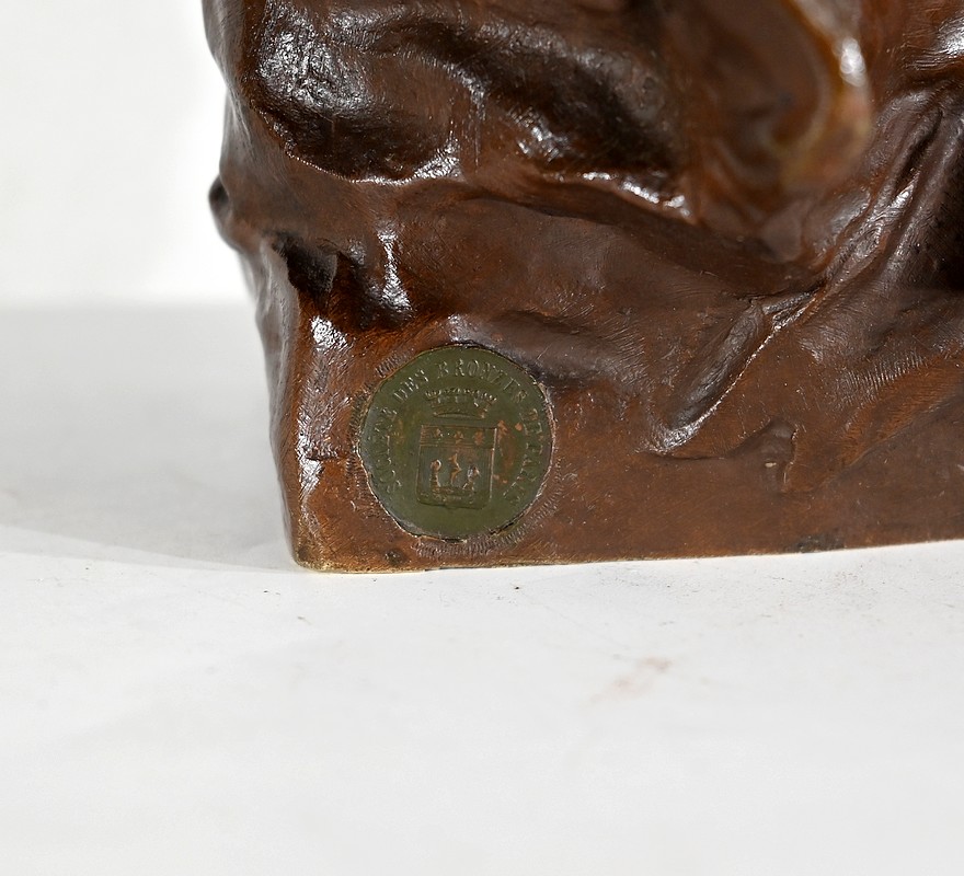 Sculpture en bronze à deux patines, signée Georges Van Der Straeten (1856 – 1941) et portant le cachet de la société des Bronzes de Paris.