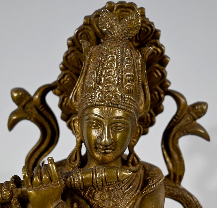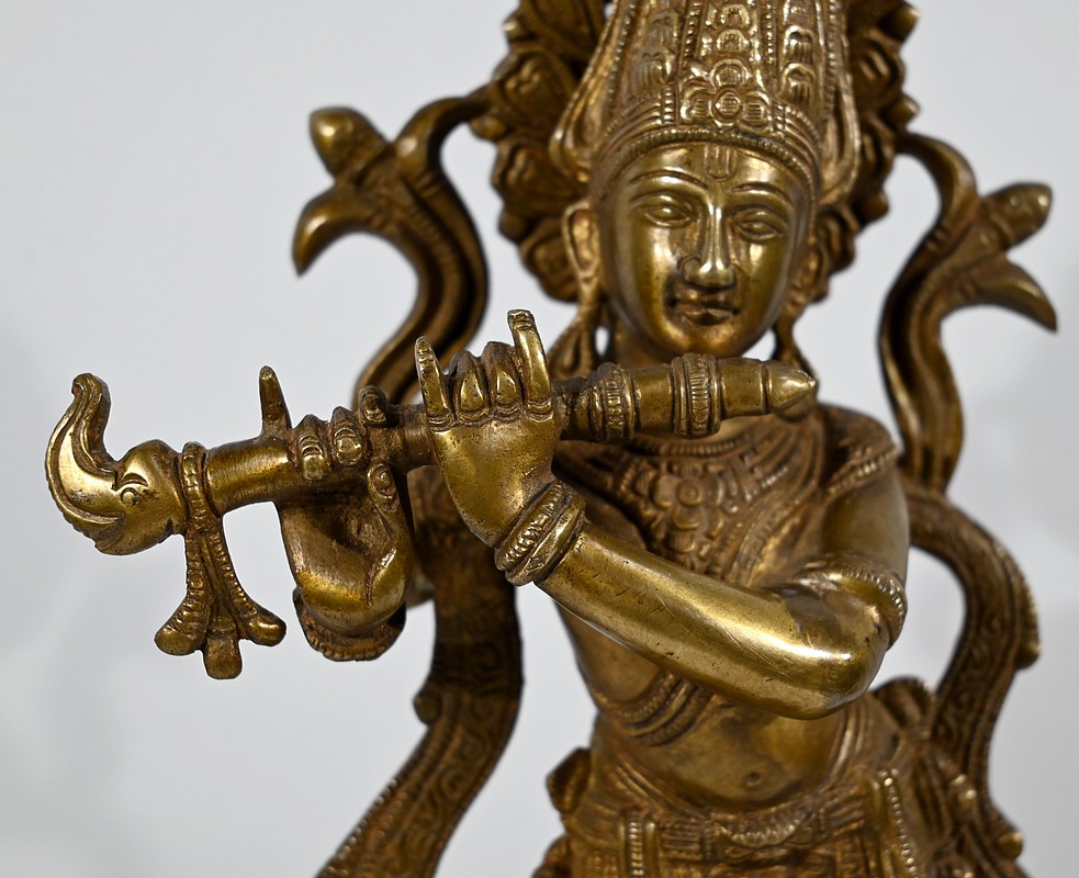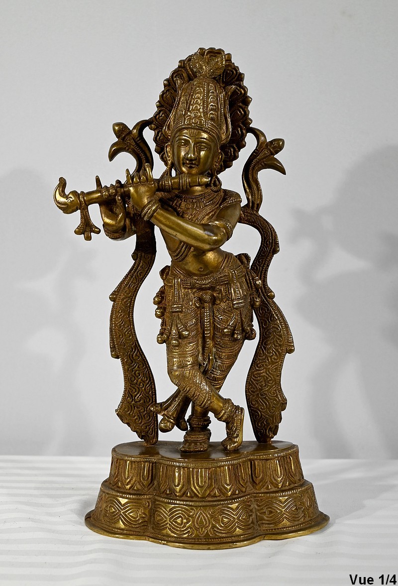 Sujet en bronze, à patine dorée, figurant Krishna.