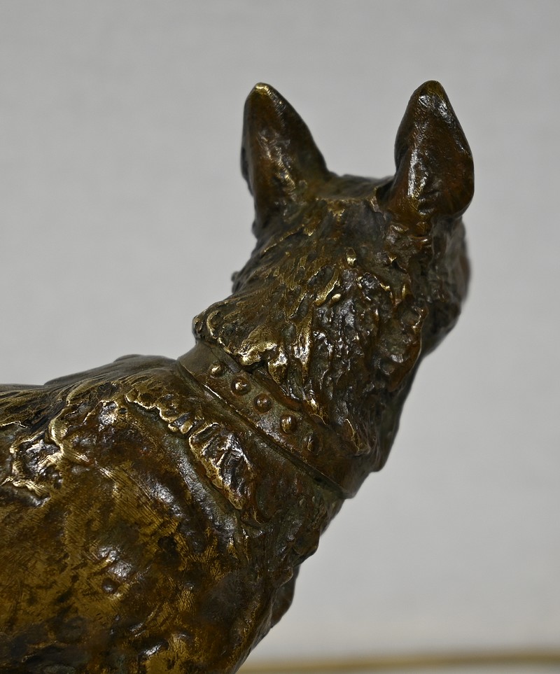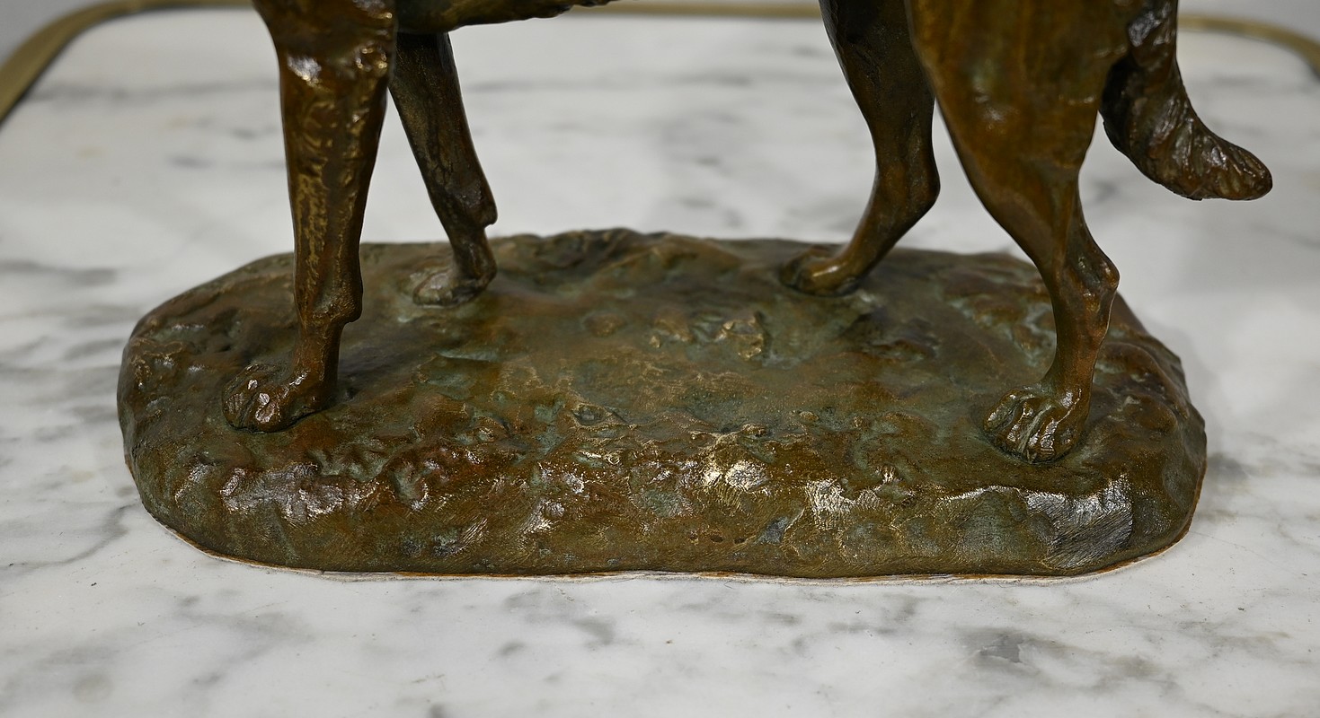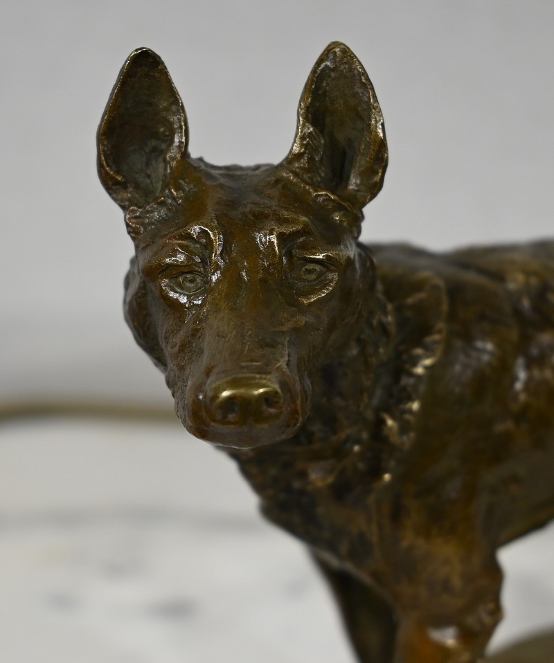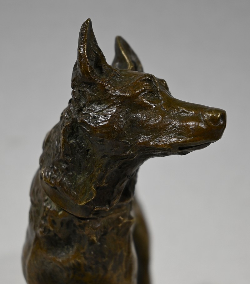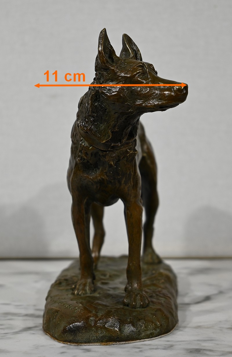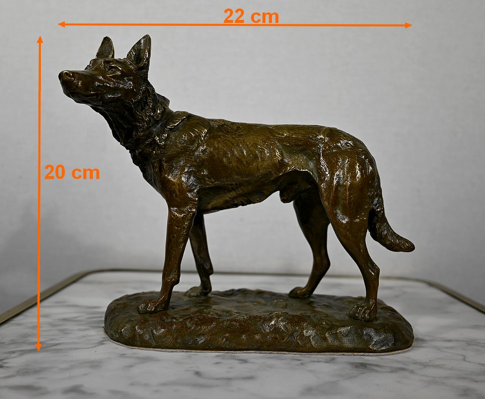 Épreuve en bronze à patine mordorée d’après Pierre-Albert Laplanche (1854-1935), représentant un chien berger allemand à l’arrêt.