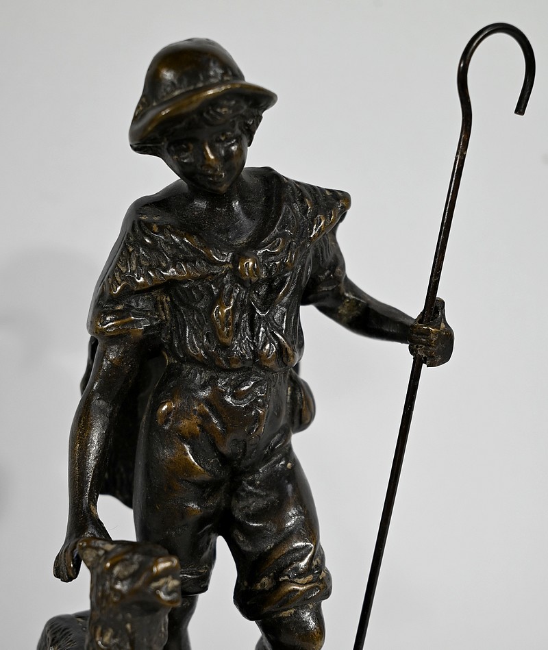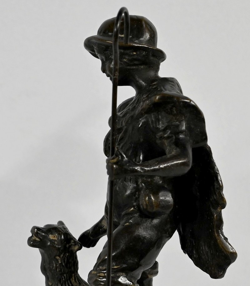 Ces œuvres figure également un berger portant une peau de mouton sur le dos et marchant tout en s’aidant de sa canne à côté de son chien.