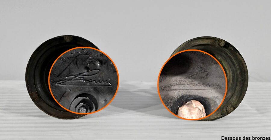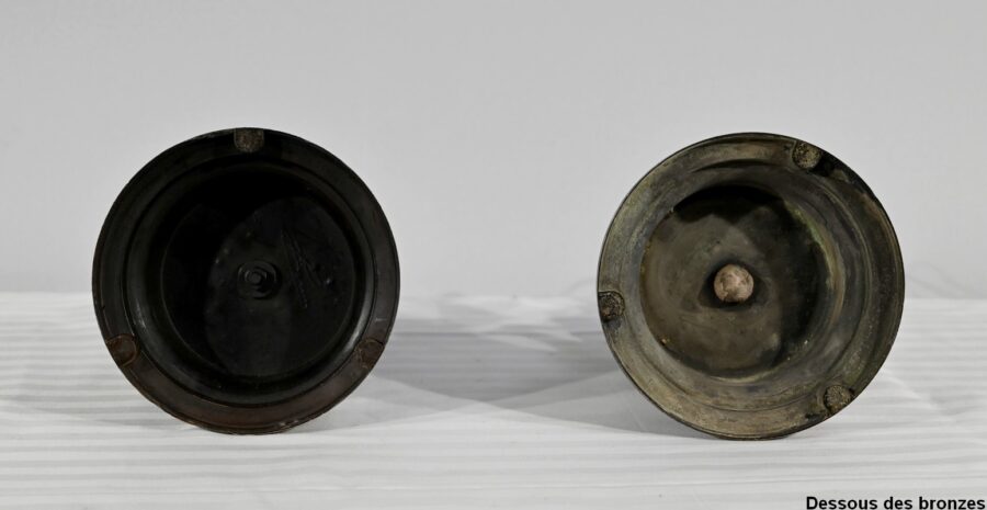 Ces deux sujets reposent sur un socle circulaire en bronze et à gorge.