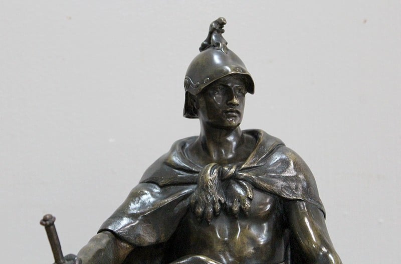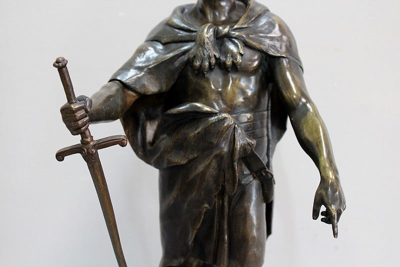 Sujet en bronze à patine brune exprimant ‘Le Devoir’ signé par Émile Louis PICAULT (1833-1915).