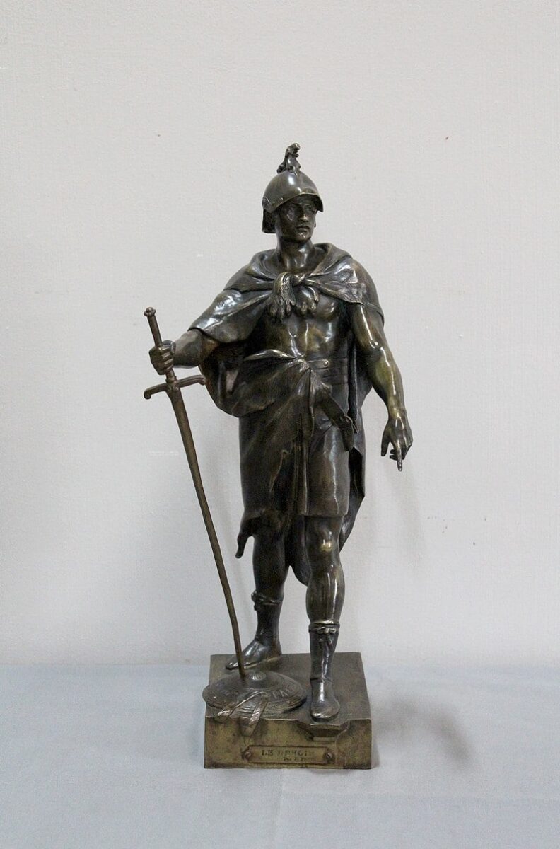 Sujet en bronze à patine brune exprimant ‘Le Devoir’ signé par Émile Louis PICAULT (1833-1915).