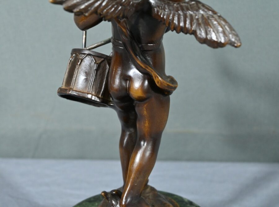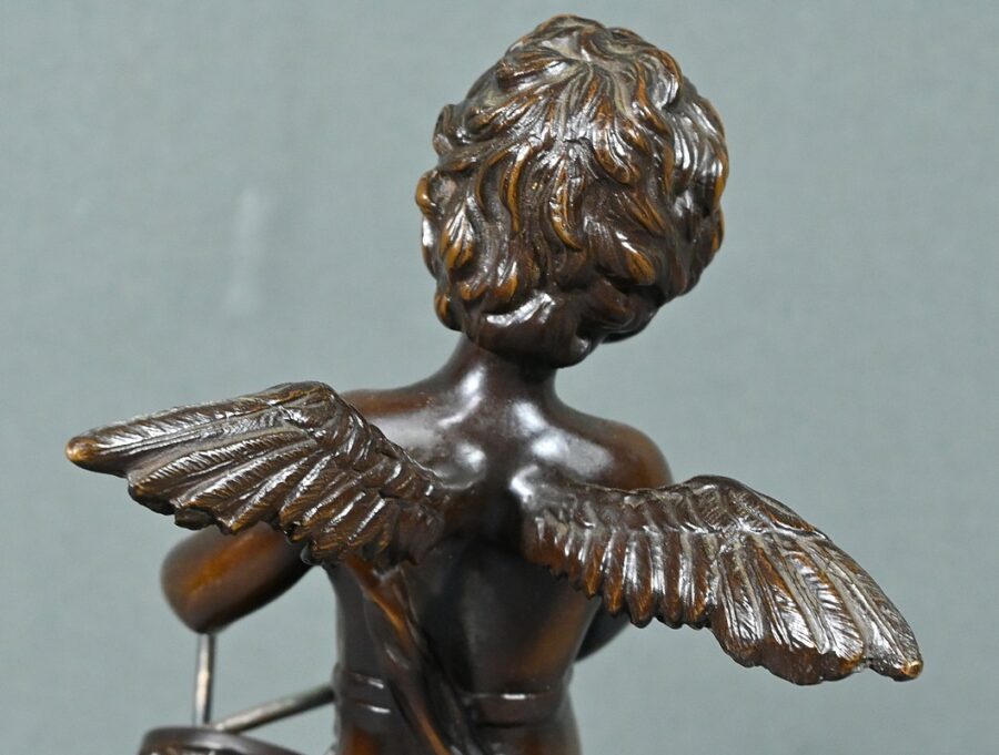 Dans cette œuvre, chaque détail compte : les boucles délicates des cheveux, l’expression malicieuse sur le visage de ce chérubin, le drapé fluide de sa tunique qui semble flotter au rythme de la musique.