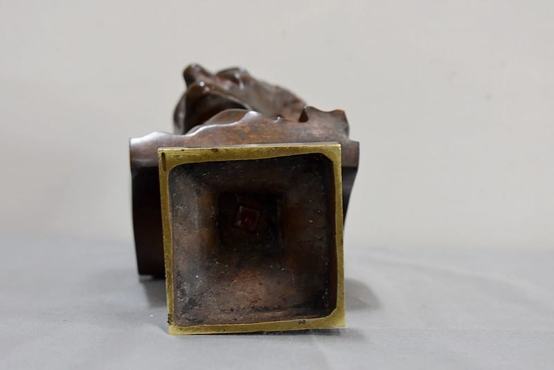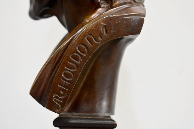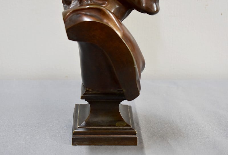 Il est signé sur l’épaule gauche et repose sur un socle carré aux côtés concaves et mouluré.