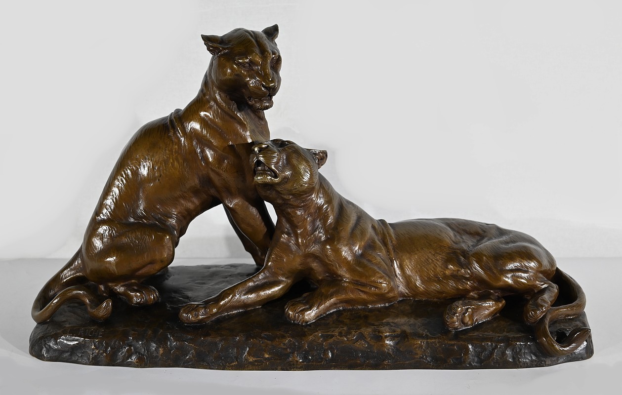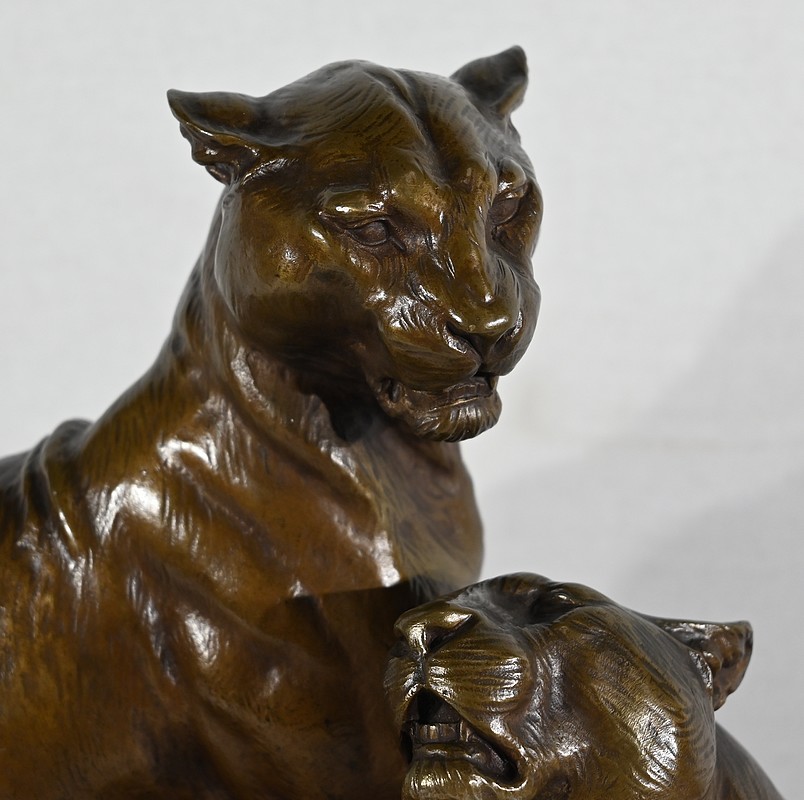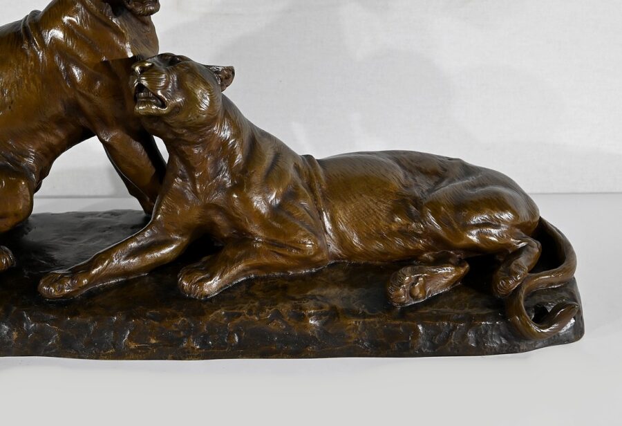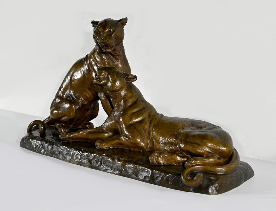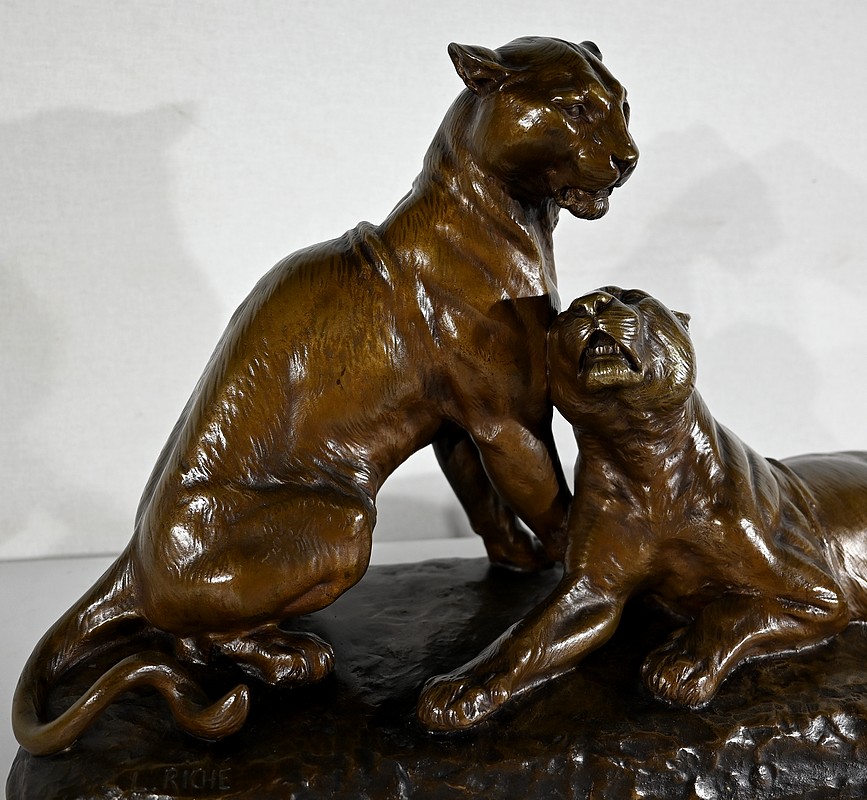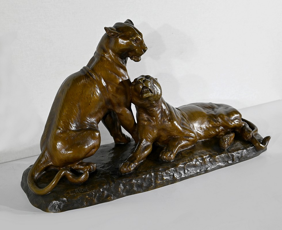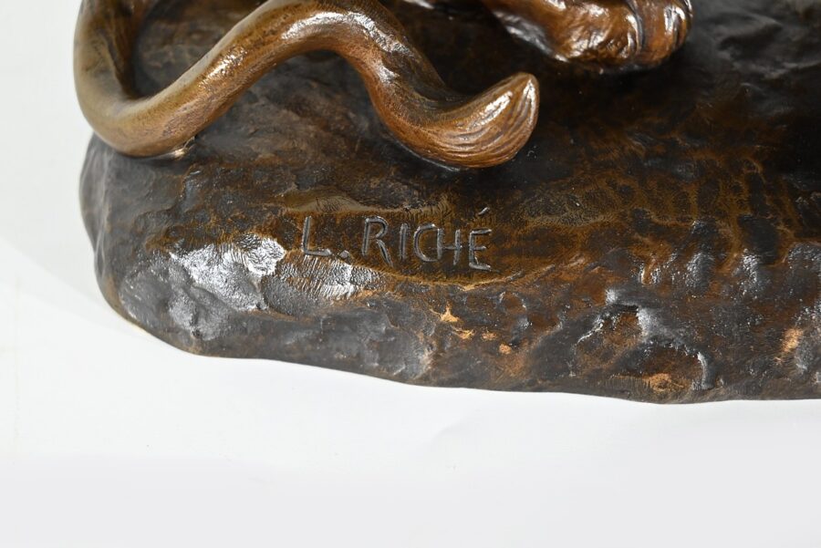 Sculpteur animalier de renom, Louis Riché (1877-1949) marquera son époque par la précision de son travail et sa passion pour les félins. Cet artiste de talent réalise ici une œuvre captivante.
